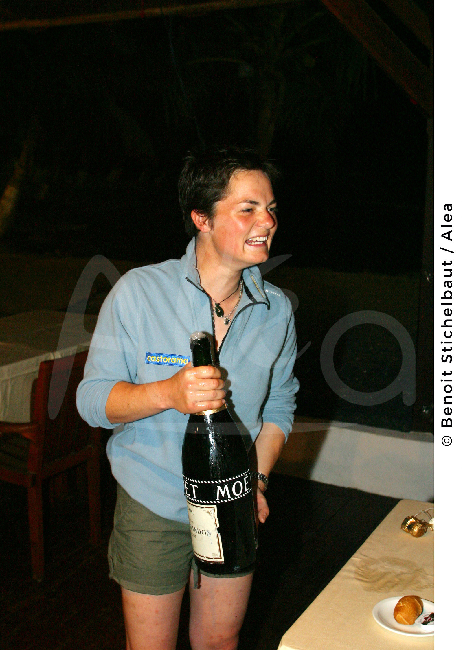 | Description | SAILING - ROUTE DU RHUM 2002 - FINISH POINTE A PITRE (FRA) - GUADELOUPE - MONOHULL 60' IMOCA - 23/11/2002 - .PHOTO : BENOIT STICHELBAUT / ALEA.ELLEN MACARTHUR (GBR) / WINNER / OPENS THE CHAMPAGNE TO DRINK WITH MIKE GOLDING (GBR) / 2ND |