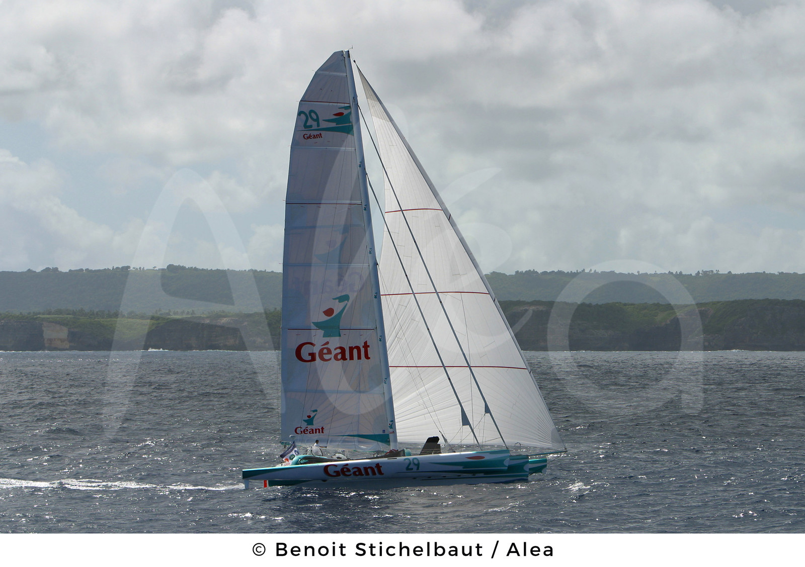 | Description | SAILING - ROUTE DU RHUM 2002 - FINISH POINTE A PITRE (FRA) - GUADELOUPE - MULTIHULLS 60' ORMA - 23/11/2002 - PHOTO : BENOIT STICHELBAUT / ALEA.GEANT / SKIPPER : MICHEL DESJOYEAUX (FRA) / WINNER MUTIHULLS 60'/ 13 DAYS 7 HOURS 53 MN 00 SECONDS - ON THE BACKGROUND THE GUADELOUPE |