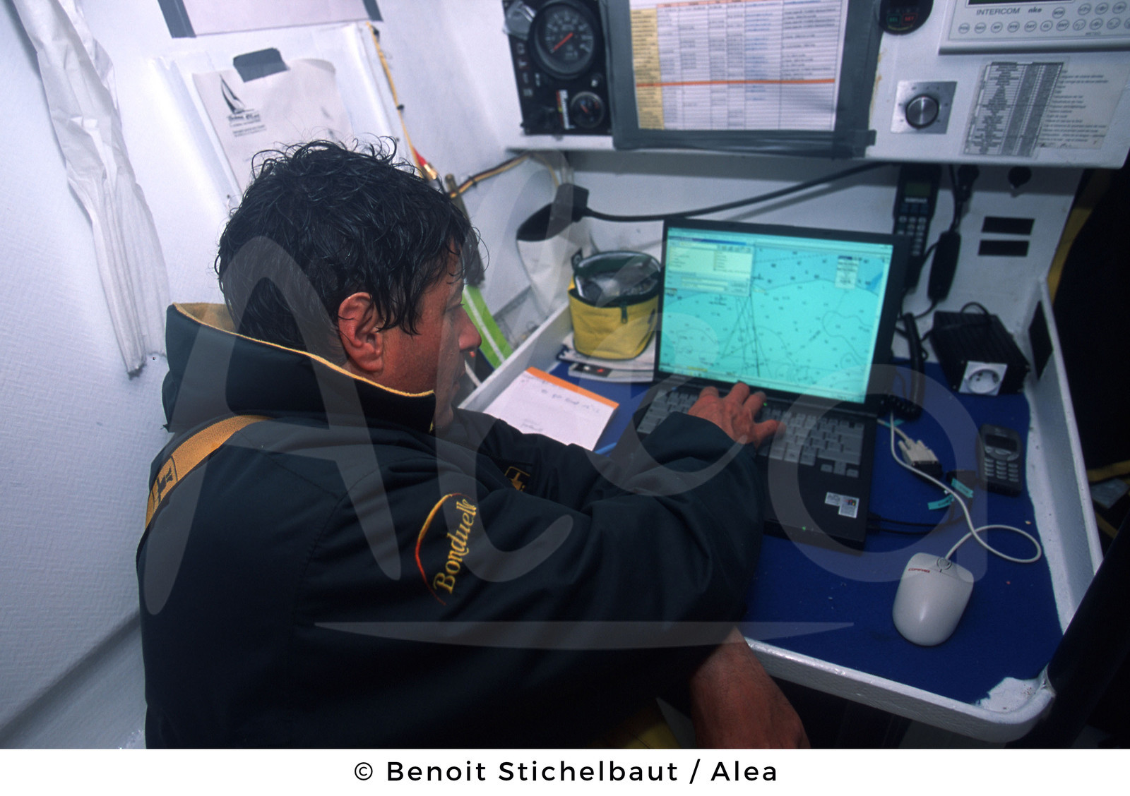 | Description | SAILING - ROUTE DU RHUM 2002 - PREPARATION - 25/05/02 - PHOTO: BENOIT STICHELBAUT / ALEA.BONDUELLE - SKIPPER : JEAN LE CAM (FRA) - ONBOARD |
