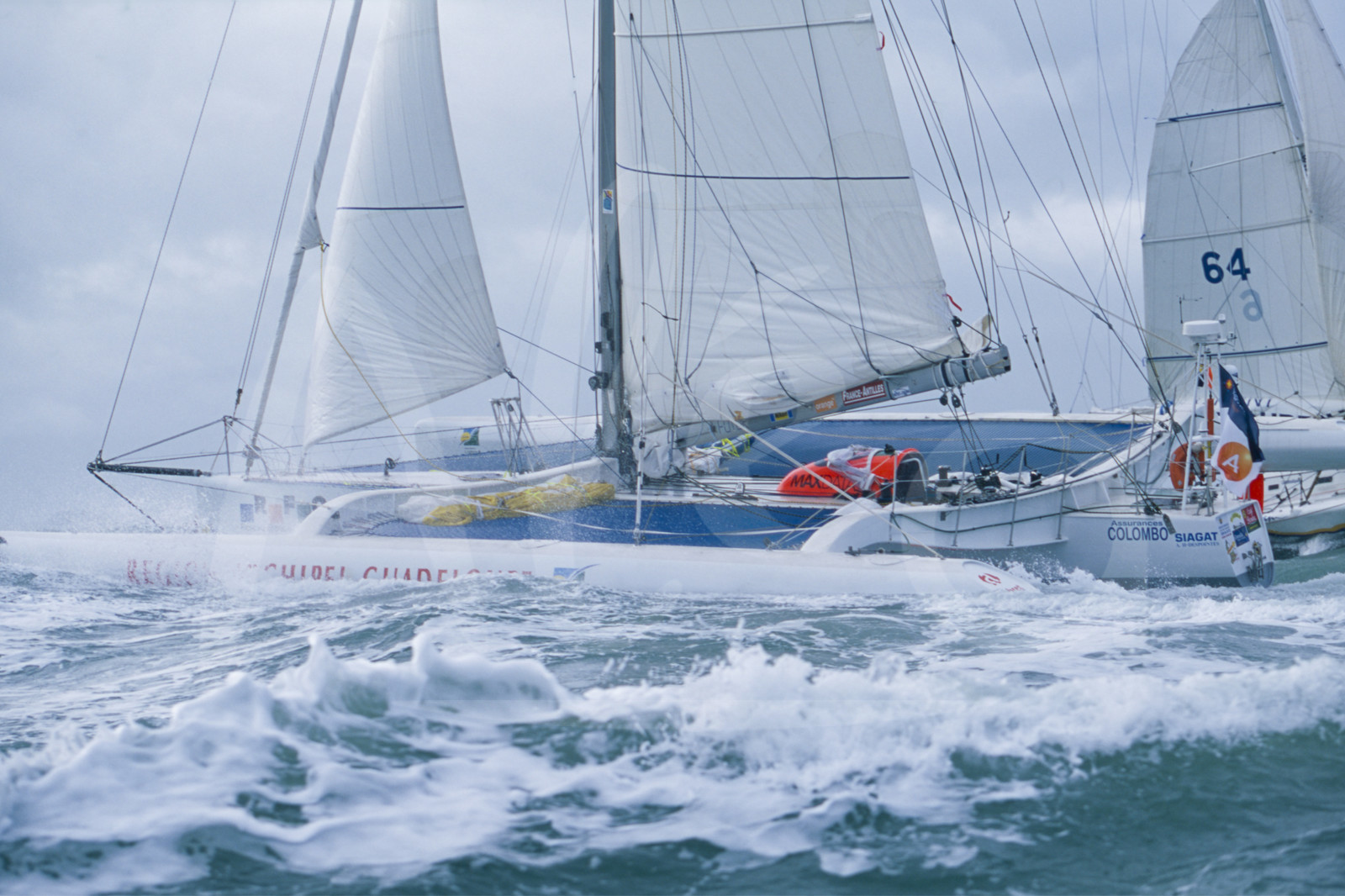 | Description | Action skipper Claude Thellier, Region Archipel Guadeloupe, pendant le départ de la Route du Rhum, à St Malo, Bretagne, le 10 Novembre 2002 - Photo Bernard Rubinstein / ALEA |
