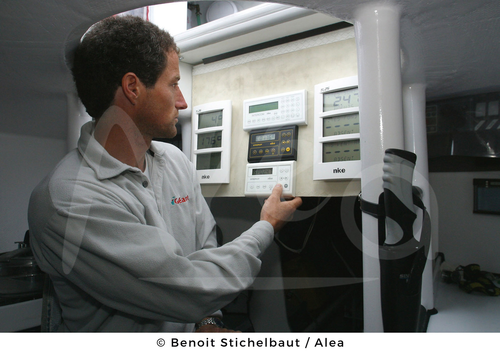 | Description | SAILING - ROUTE DU RHUM 2002 - PREPARATION - 04/11/02 - PHOTO: BENOIT STICHELBAUT / ALEA.GEANT / SKIPPER : MICHEL DESJOYEAUX (FRA) - ON BOARD - NAVIGATION KEYBOARDS AND SCREENS |