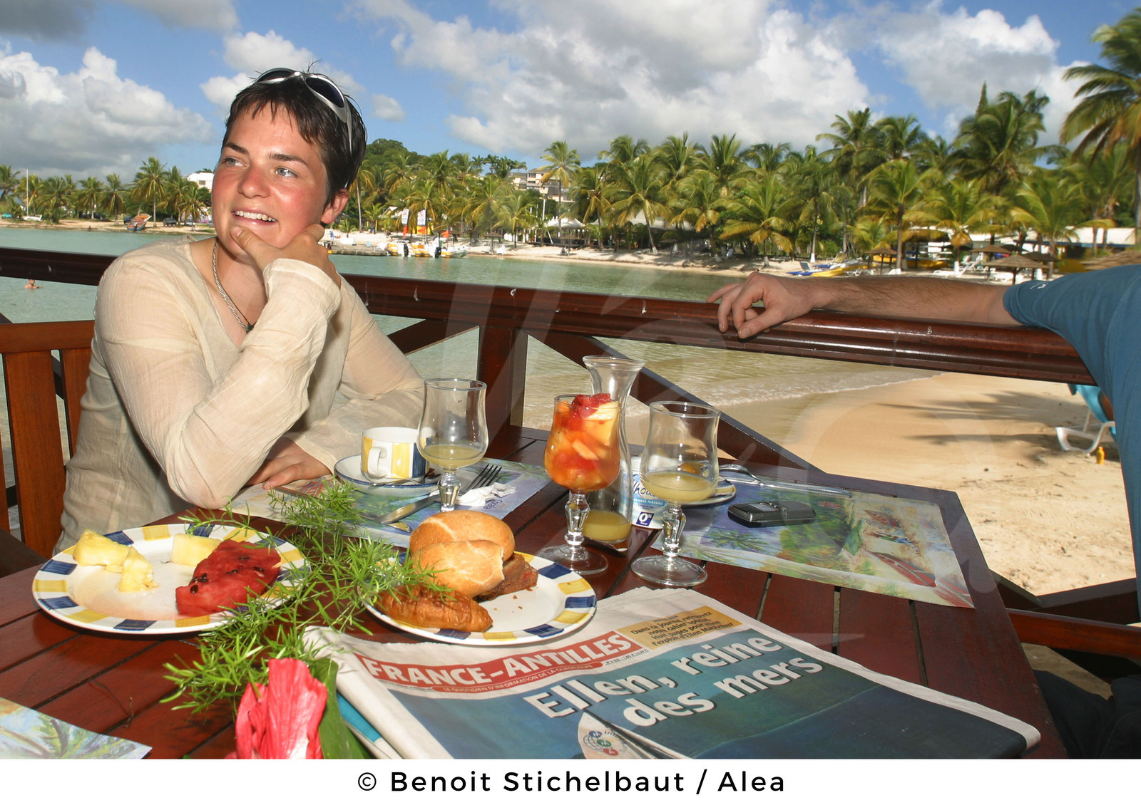 | Description | SAILING - ROUTE DU RHUM 2002 - FINISH POINTE A PITRE (FRA) - GUADELOUPE - MONOHULL 60' IMOCA - 23/11/2002 - ELLEN MACARTHUR EXCLUSIVE FEATURE - PHOTO : BENOIT STICHELBAUT / ALEA.FIRST BREAKFAST AND DEBRIEFING WITH KINGFISHER OFFSHORE CHALLENGES TEAM |