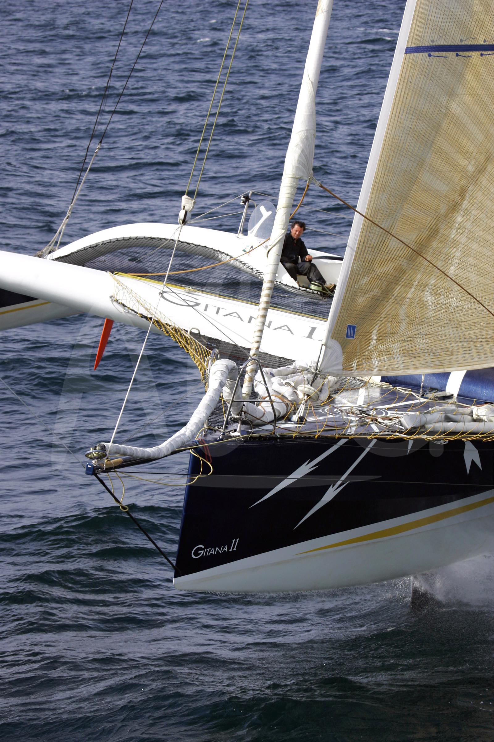 | Description | Images aériennes de Lionel Lemonchoix avant la route du Rhum 2006, sur le multicoque GITANA 11 - le 27 Septembre 2006, en Bretagne Sud - Photo Benoit Stichelbaut / Alea.. |