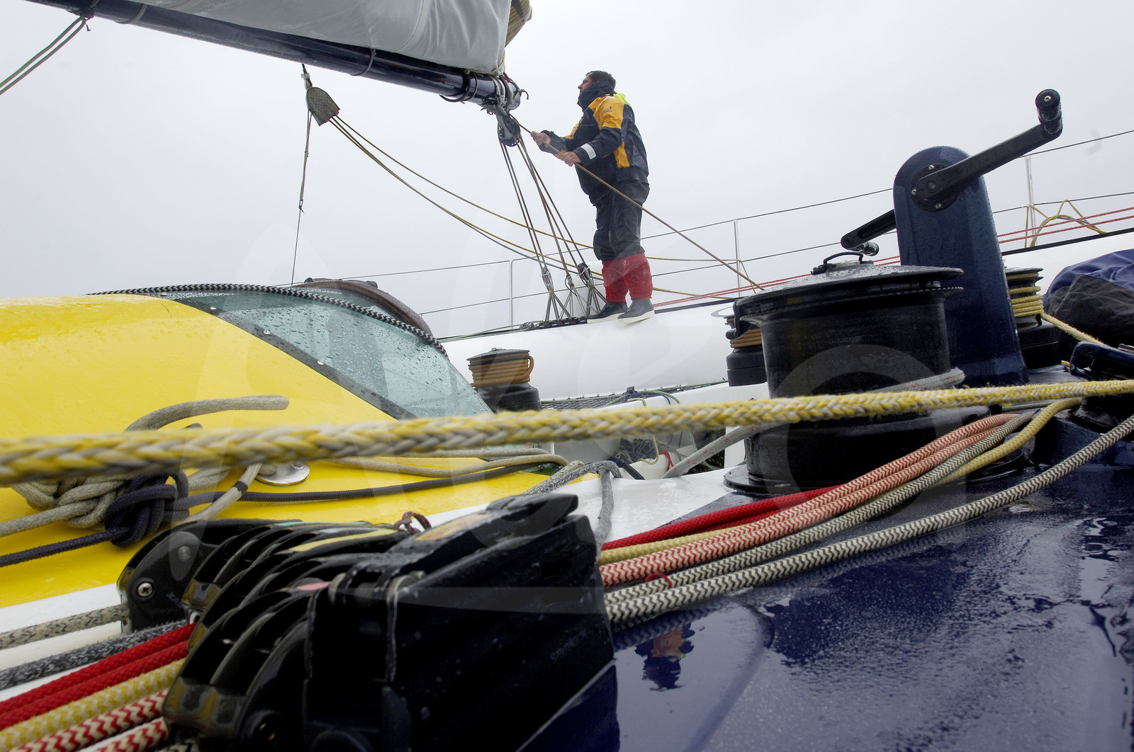 | Description | Images embarquées avec Lionel Lemonchoix avant la route du Rhum 2006, par gros temps sur le multicoque GITANA 11 - le 3 Septembre 2006, en Bretagne Sud - Photo Yvan Zedda / Alea.. |