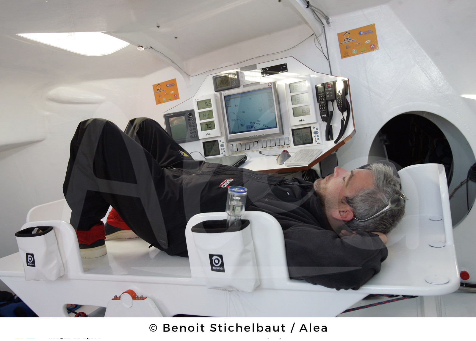| Description | SAILING - LA ROUTE DU RHUM LA BANQUE POSTALE 2006 - PREPARATION - OFFSHORE BENODET (FRA) - 13/10/2006.PHOTO : BENOIT STICHELBAUT / ALEA.IMOCA CLASS - ON BOARD PRB / SKIPPER : VINCENT RIOU (FRA). |