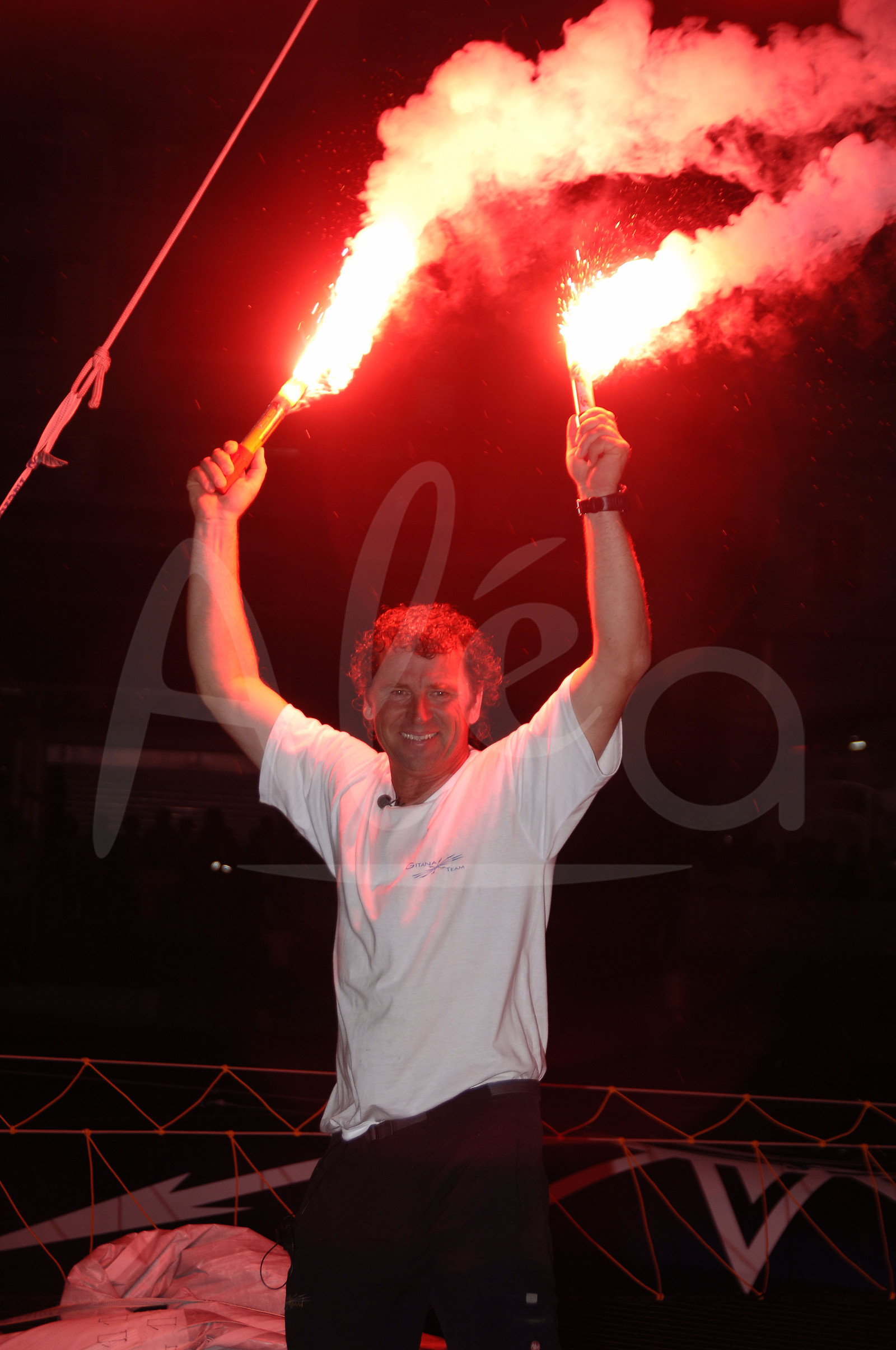 | Description | Arrivée victorieuse de Lionel Lemonchoix dans la route du Rhum 2006, sur le multicoque GITANA 11 - record battu en 7j 17h 19mn 6s, le 6 Novembre 2006, à Pointe à Pitre, Guadeloupe - Photo Yvan Zedda / Alea.. |