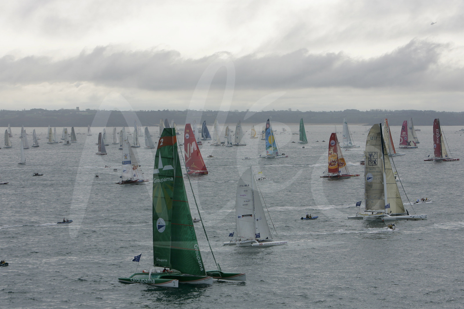 DescriptionSAILING - ROUTE DU RHUM LA BANQUE POSTALE 2006 - SAINT-MALO (FRA) - START - 29/10/2006 PHOTO : JEAN-MARIE LIOT / ALEA ILLUSTRATION MULTIS START - GROUPAMA / SKIPPER : FRANCK CAMMAS (FRA)