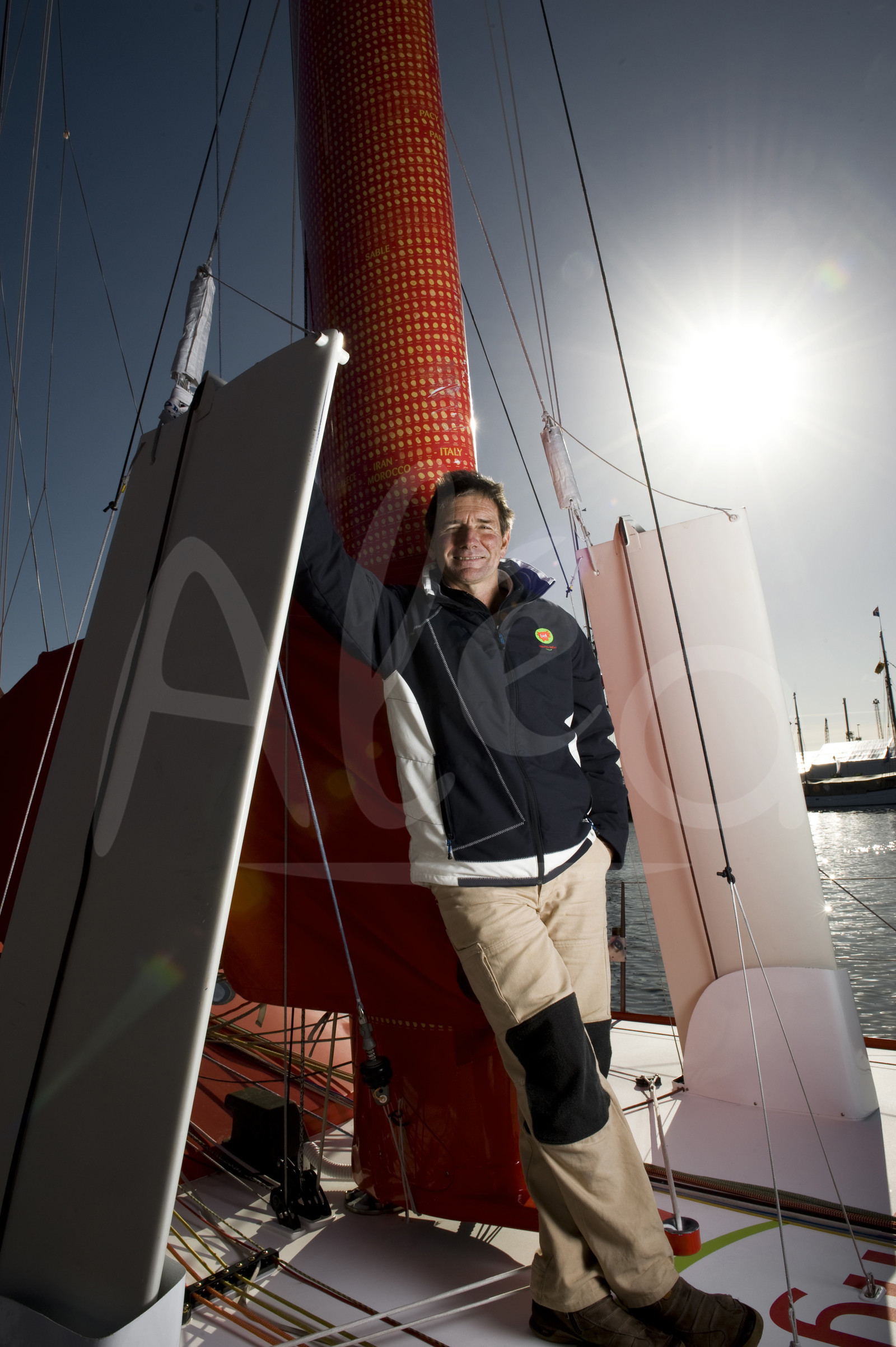 DescriptionSAILING - ROUTE DU RHUM 2010 - 28-31/10/2010 - SAINT MALO (FRA) - PHOTO : VINCENT CURUTCHET / ALEA - GROUPE BEL - SKIPPER : KITO DE PAVANT - AMBIANCE PORTRAIT