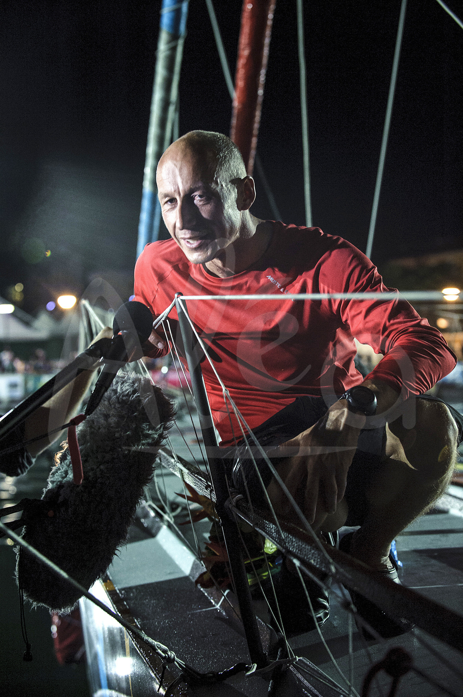 | Description | Armel Tripon, skipper of the monohull For Humble Heroes , Imoca category, talks to the media after finishing 4th of the Route du Rhum Destination Guadeloupe in 13d 14h 04mn 04s in Pointe ‡ Pitre, Guadeloupe, on november 16, 2014 - Photo Olivier Blanchet / ALEA |