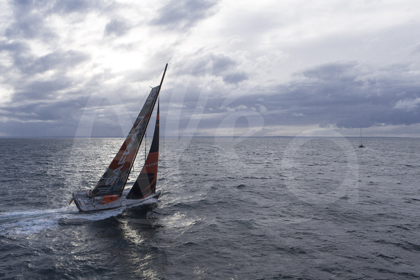 | Description | Marc Guillemot, skipper of the Imoca SAFRAN in action during the Route du Rhum sailing race start on november 02, 2014 - Photo Jean Marie Liot / ALEA |
