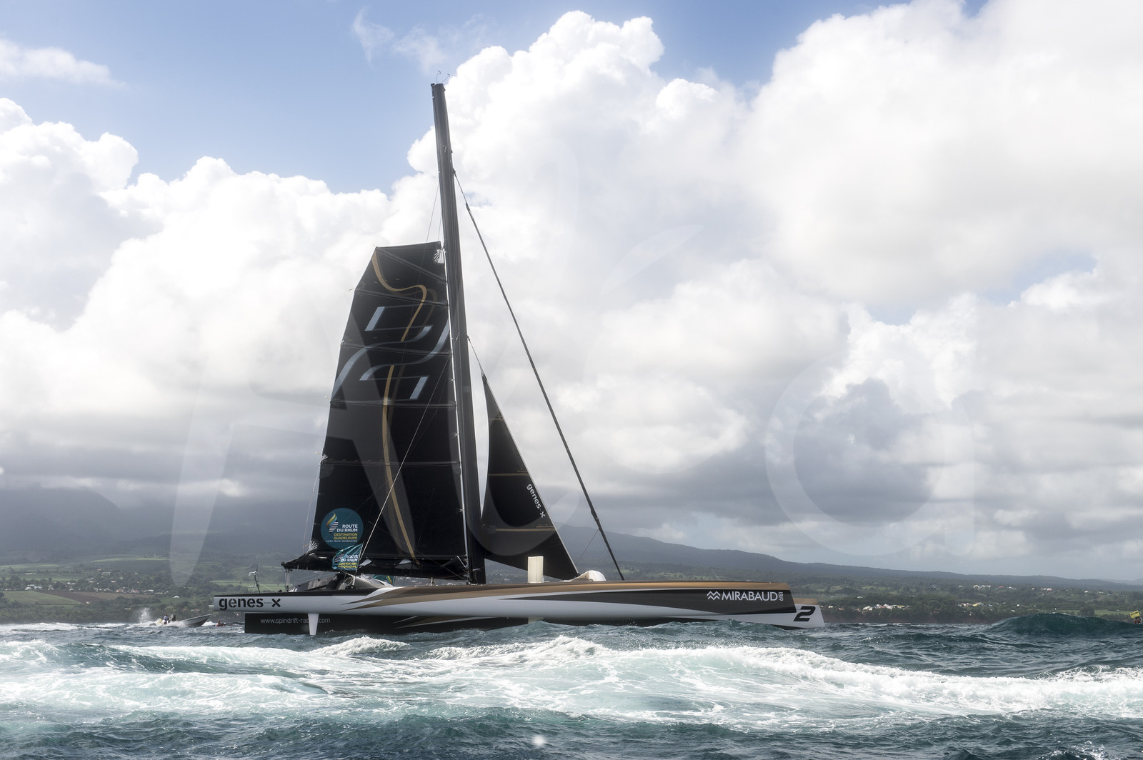 | Description | Yann Guichard, skipper of the maxi trimaran Spindrift 2, Ultime category, finishes 2nd in the Route du Rhum Destination Guadeloupe, in Pointe ‡ Pitre, Guadeloupe, on november 10, 2014 - Photo Olivier Blanchet / ALEA |