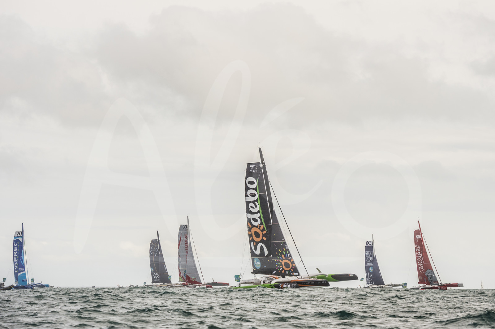 | Description | Thomas Coville, skipper of the Ultime Sodebo in action during the Route du Rhum sailing race start on november 02, 2014 - Photo Vincent Curutchet / ALEA |