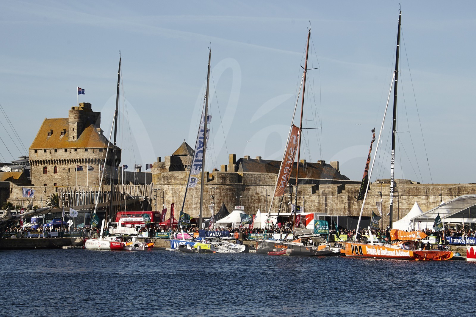 | Description | France, Ille-et-VIllaine (35), Côte d'Emeraude, Saint-Malo, voiliers à quai devant la ville fortifiée avant le départ de la Route du Rhum 2014 - Photo Benoit Stichelbaut / Alea |