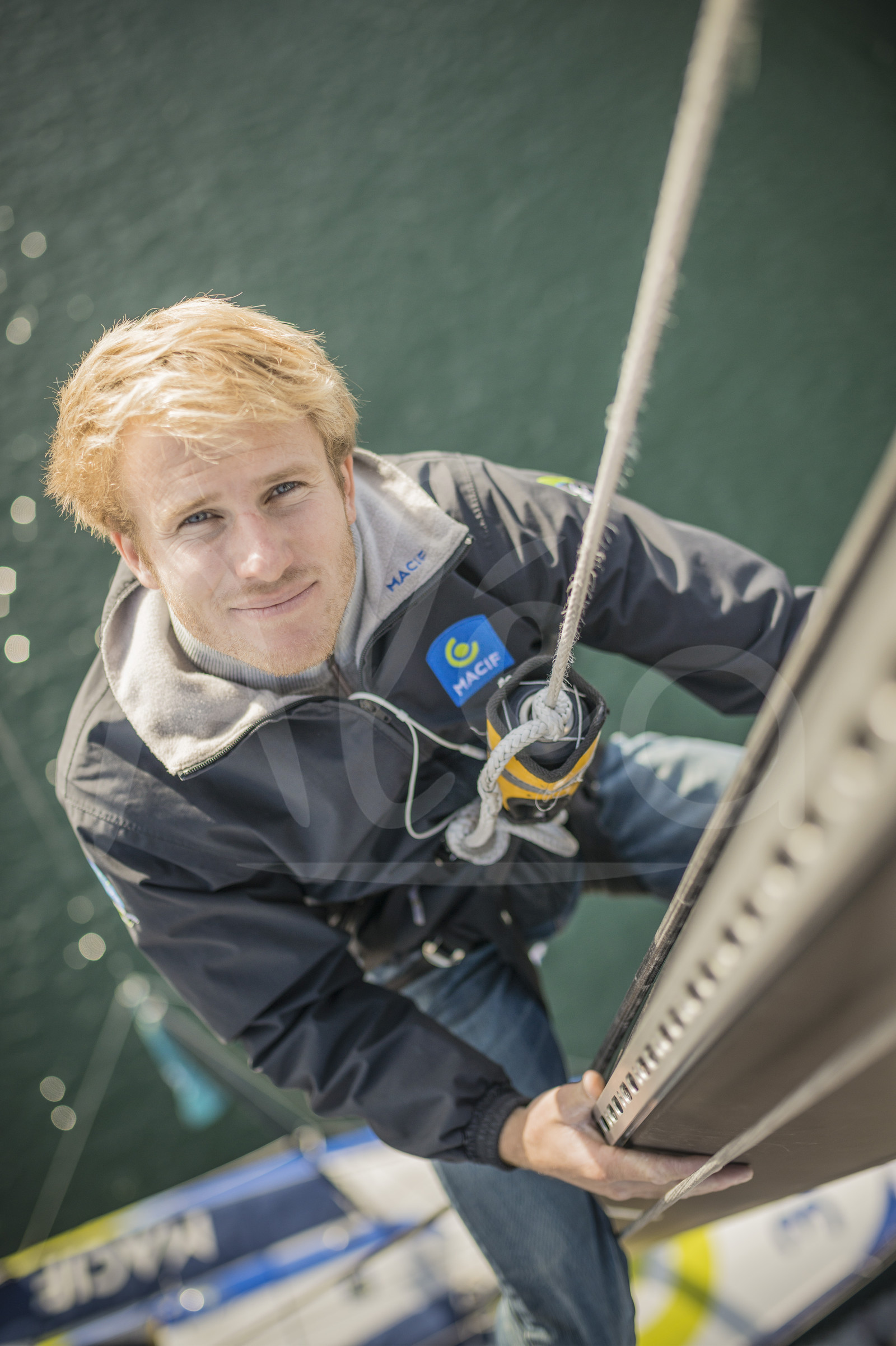 | Description | Portrait shots of Francois Gabart, skipper of IMOCA MACIF up his mast on october 31, 2014 before the Route du Rhum sailing race to start on november 02, 2014 - Photo Vincent Curutchet / ALEA |