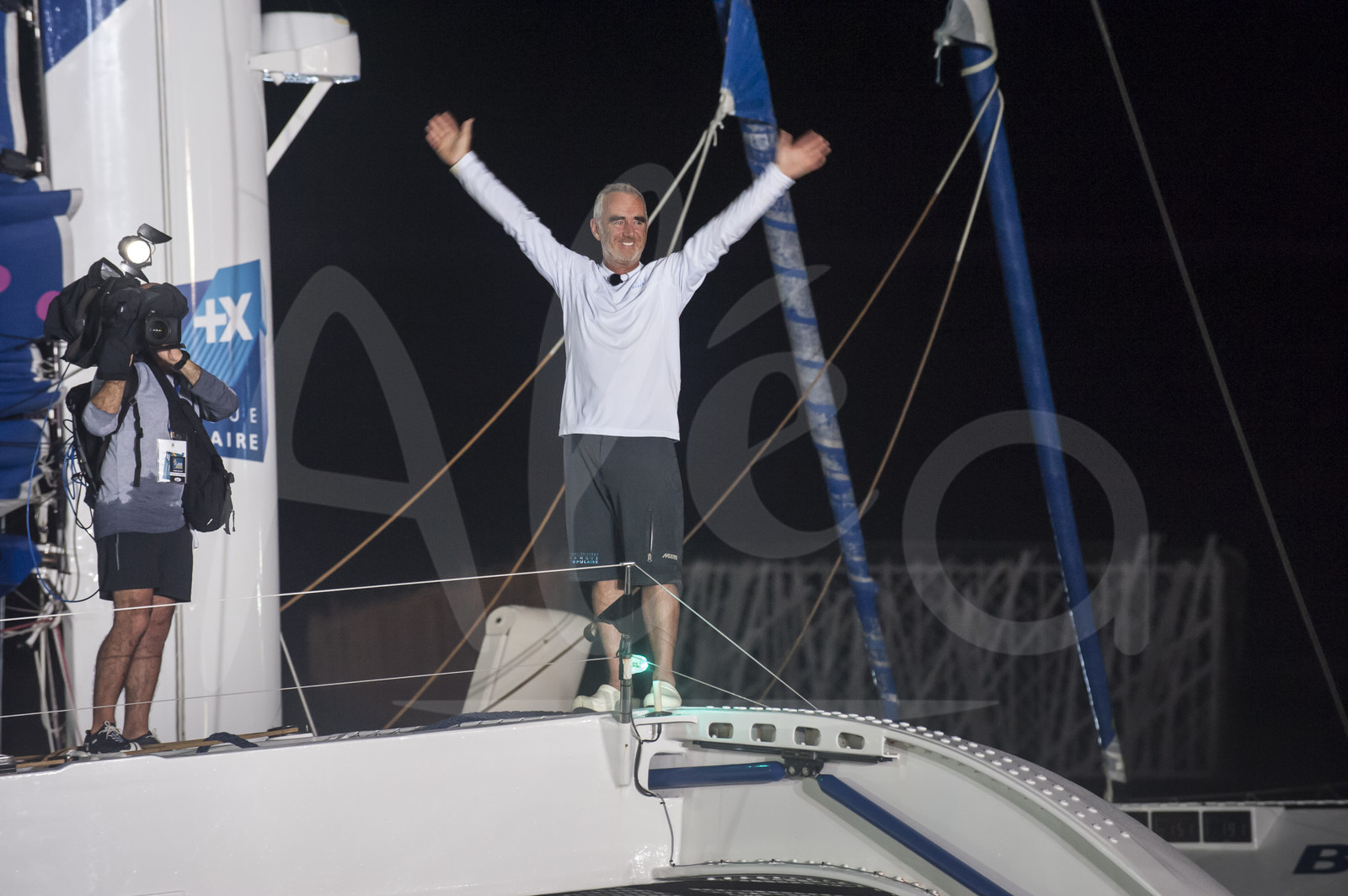 | Description | Loick Peyron, skipper of the maxi trimaran Banque Populaire VII, Ultime category, breaks the historical record and wins the Route du Rhum Destination Guadeloupe in 7d 15h 8mn 32s, in Pointe ‡ Pitre, Guadeloupe, on november 10, 2014 - Photo Olivier Blanchet / ALEA |
