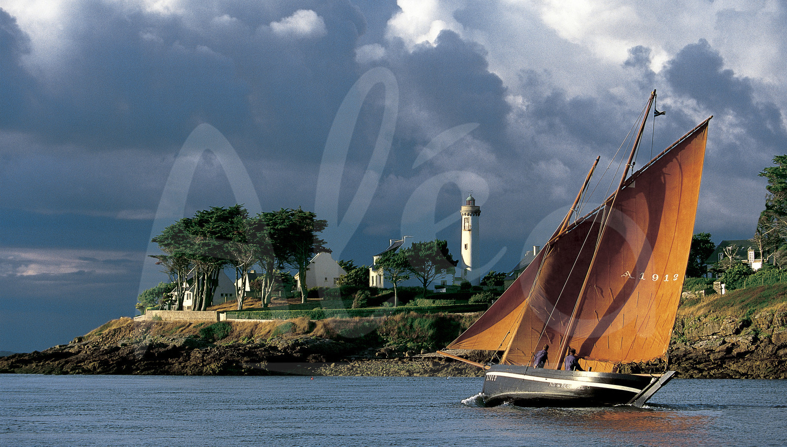 | Description | NdlR : cette image, aujourd'hui très célèbre, a été une des photos stars des années 2000, mais nous avons essayé de proposer ici de nouvelles déclinaisons de qualité...Ce soir d’aout, la météo est propice à de belles photos de paysage. Une sortie en mer s’impose. Et c’est en apercevant les voiles oranges d’un vieux gréement, que je vais à sa rencontre. Quelques photos prises du bateau, le Forban du Bono ne se dirige pas vers un port tout prêt mais directement vers l’entre du golfe. Le courant descend et donc est contraire à sa route. Les secrets des courants de l’entrée de Port-Navalo indiquent qu’il faut coller à la cote pour aller chercher le contre courant. Il suffit alors de se placer au milieu du courant, moteur embrayé et d’attendre que le bateau passe. La pointe, le phare, le ciel chargé et le voilier traditionnel : tout est dit. On peut rentrer….Le Forban du Bono est un bateau typique du golfe du Morbihan. Ce soir d’été le ciel est chargé après un coup de vent breton (même en été). Contrairement au Sinagot qui restait dans le golfe à transporter huitres et charges entre les ports, le forban est plus toilé et était chargé de traverser la baie de Quiberon ou les vents et la mer pouvaient être plus capricieux..Photo prise au canon, 80x200 mm, film Provia 100.Photo Jean-Marie Liot / Alea |