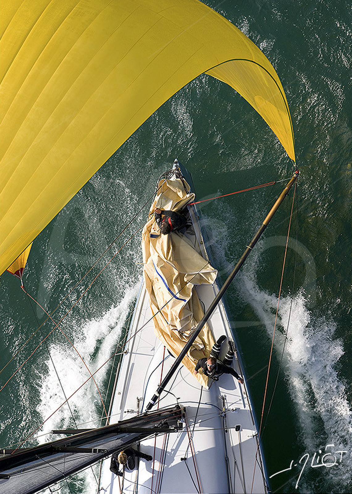 | Description | Spi Ouest-France 2012 - La Trinité-sur-Mer le 6/04/2012. .Spi jaune aérien.© Jean-Marie LIOT / Alea |