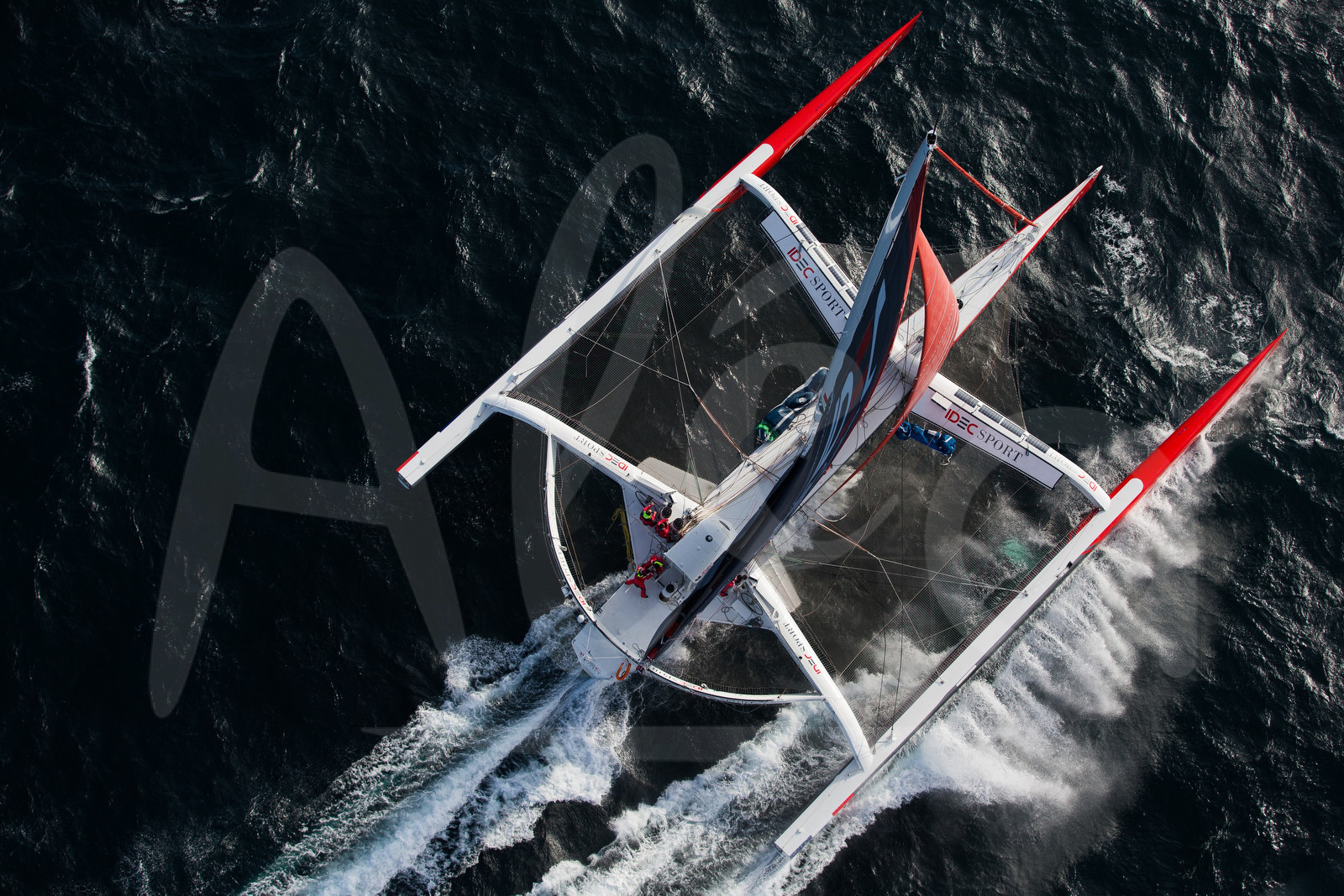 | Description | First aerial images of IDEC SPORT maxi trimaran, skipper Francis Joyon and his crew, training off Belle-Ile, Brittany, on october 19, 2015 - Photo Jean Marie Liot / Alea |