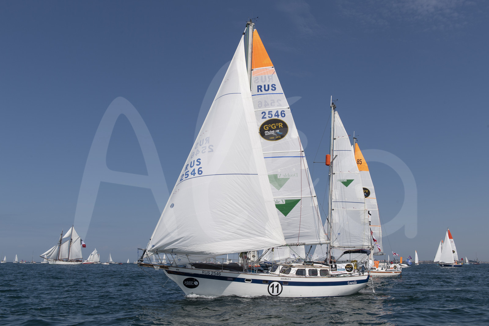 | Description | Golden Globe Race Start - Igor Zaretskiy (RUS) - skipper Esmeralda, in Les Sables d'Olonne, France, on July 1st, 2018 - Photo Olivier Blanchet / AleA |