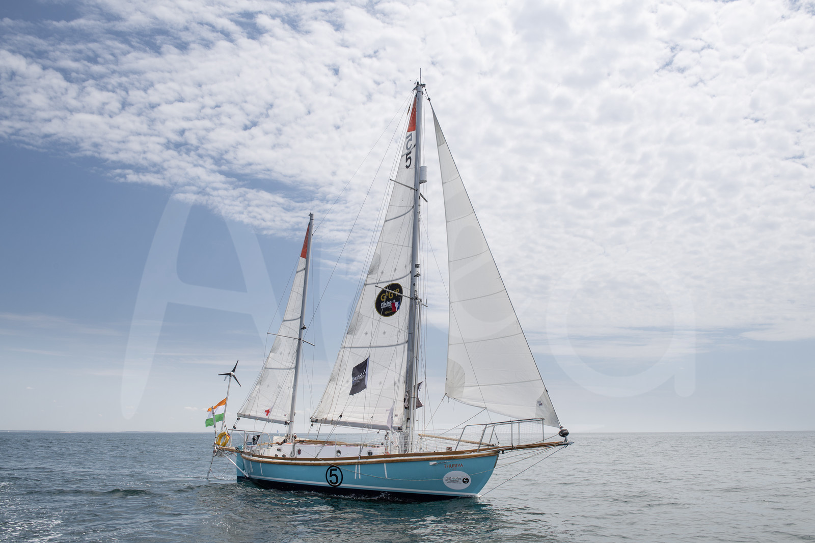 | Description | Golden Globe Race Start - Abhilash Tomy (India) - skipper Thuriya, in Les Sables d'Olonne, France, on July 1st, 2018 - Photo Olivier Blanchet / AleA |