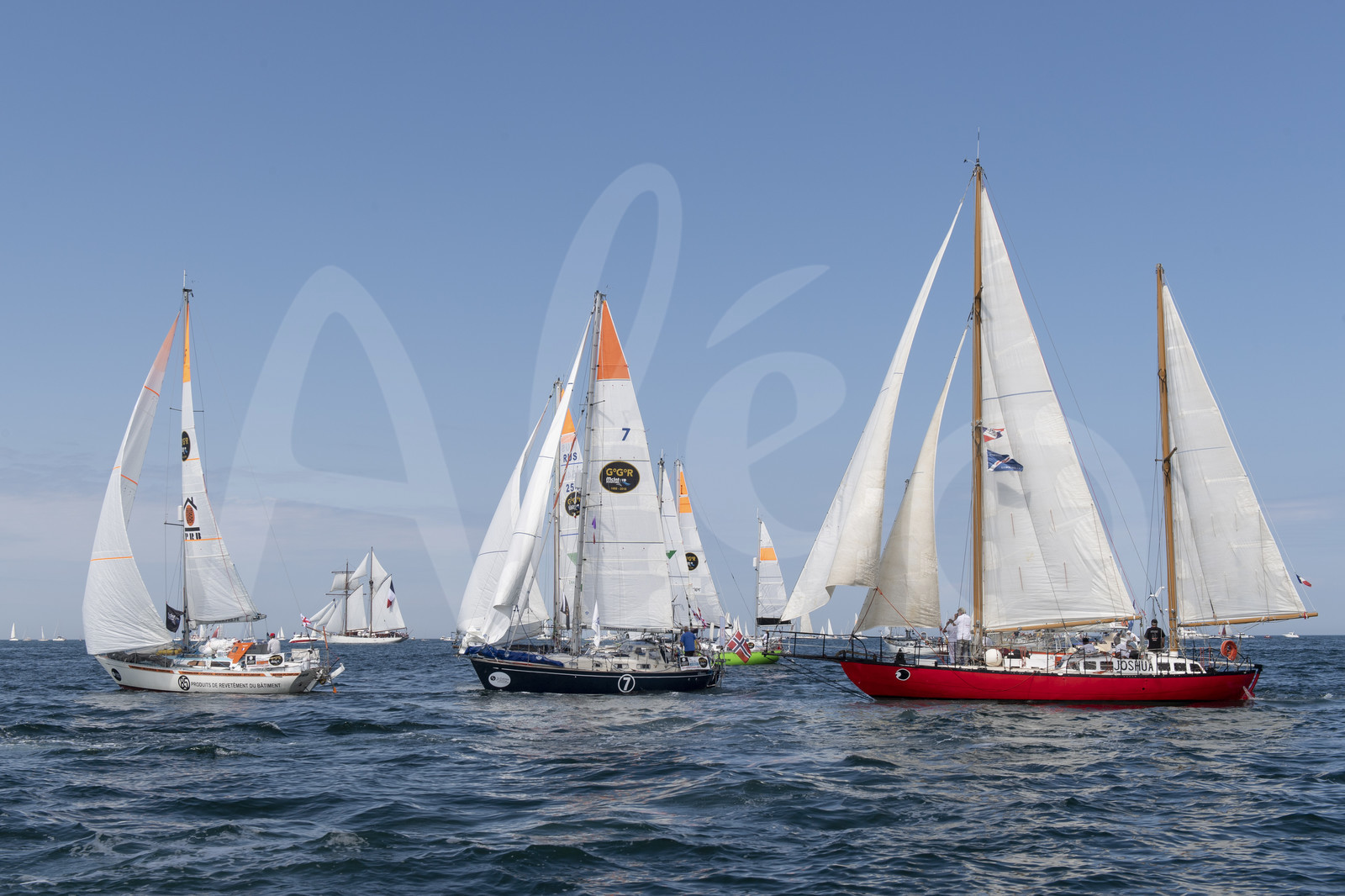 | Description | Golden Globe Race Start - guest boat Joshua, skipped by Bernard Moitessier in 1968, in Les Sables d'Olonne, France, on July 1st, 2018 - Photo Olivier Blanchet / AleA |