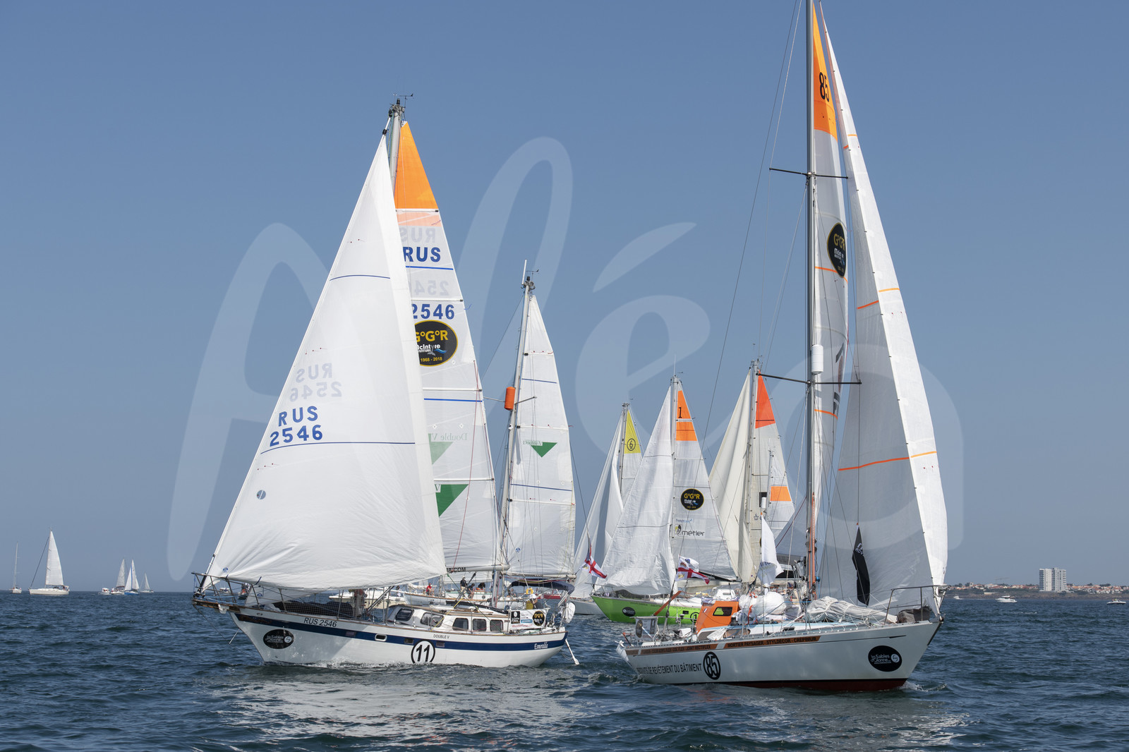 | Description | Golden Globe Race Start - Igor Zaretskiy (RUS) - skipper Esmeralda and Philippe Peche (FRA) - skipper PRB, in Les Sables d'Olonne, France, on July 1st, 2018 - Photo Olivier Blanchet / AleA |