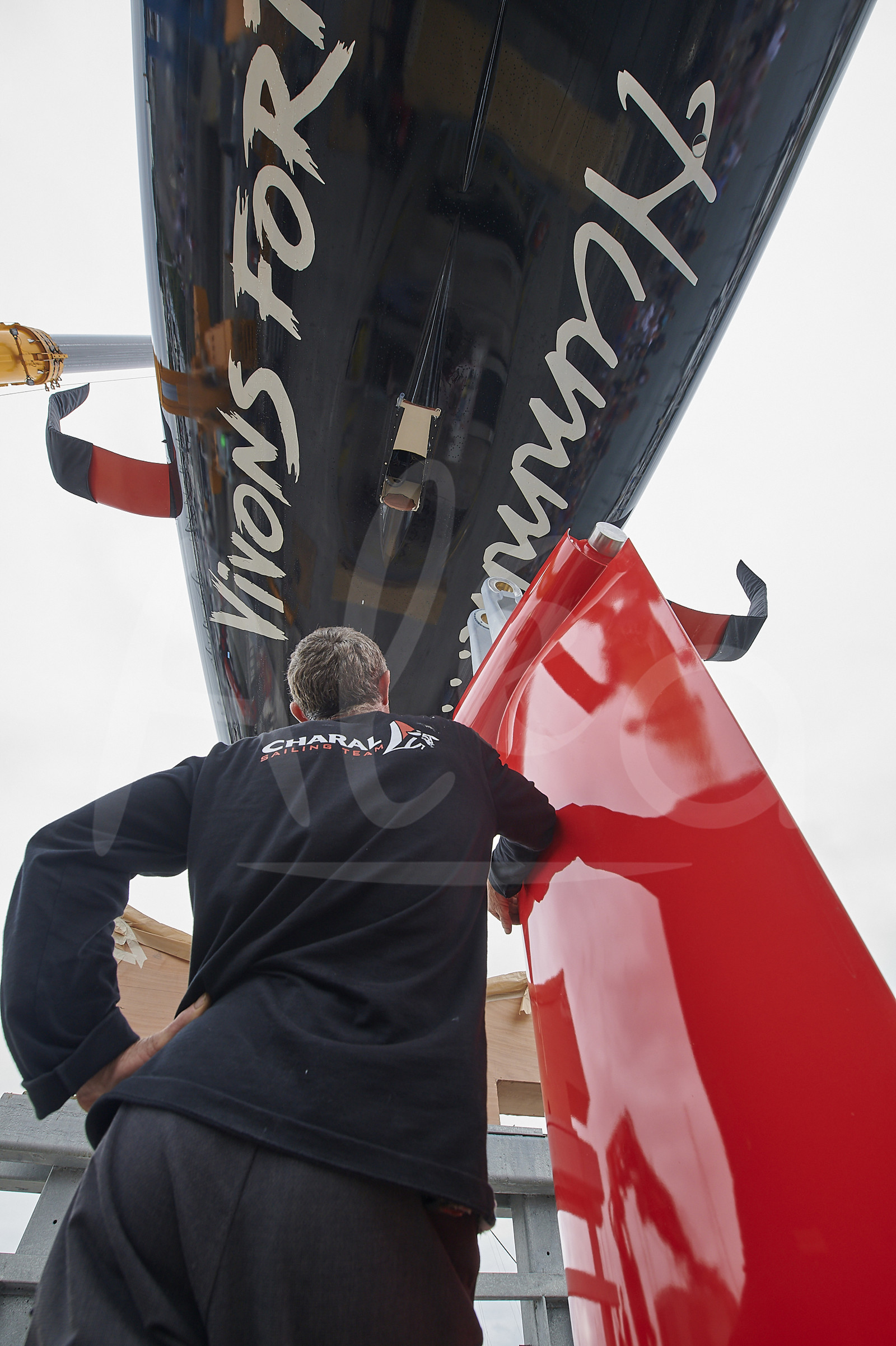 | Description | Reveal of the new IMOCA CHARAL, skipper Jeremie BEYOU, at CDK shipyard in Port La Foret (France), on August 21st, 2018 - Photo Yvan Zedda / Alea |