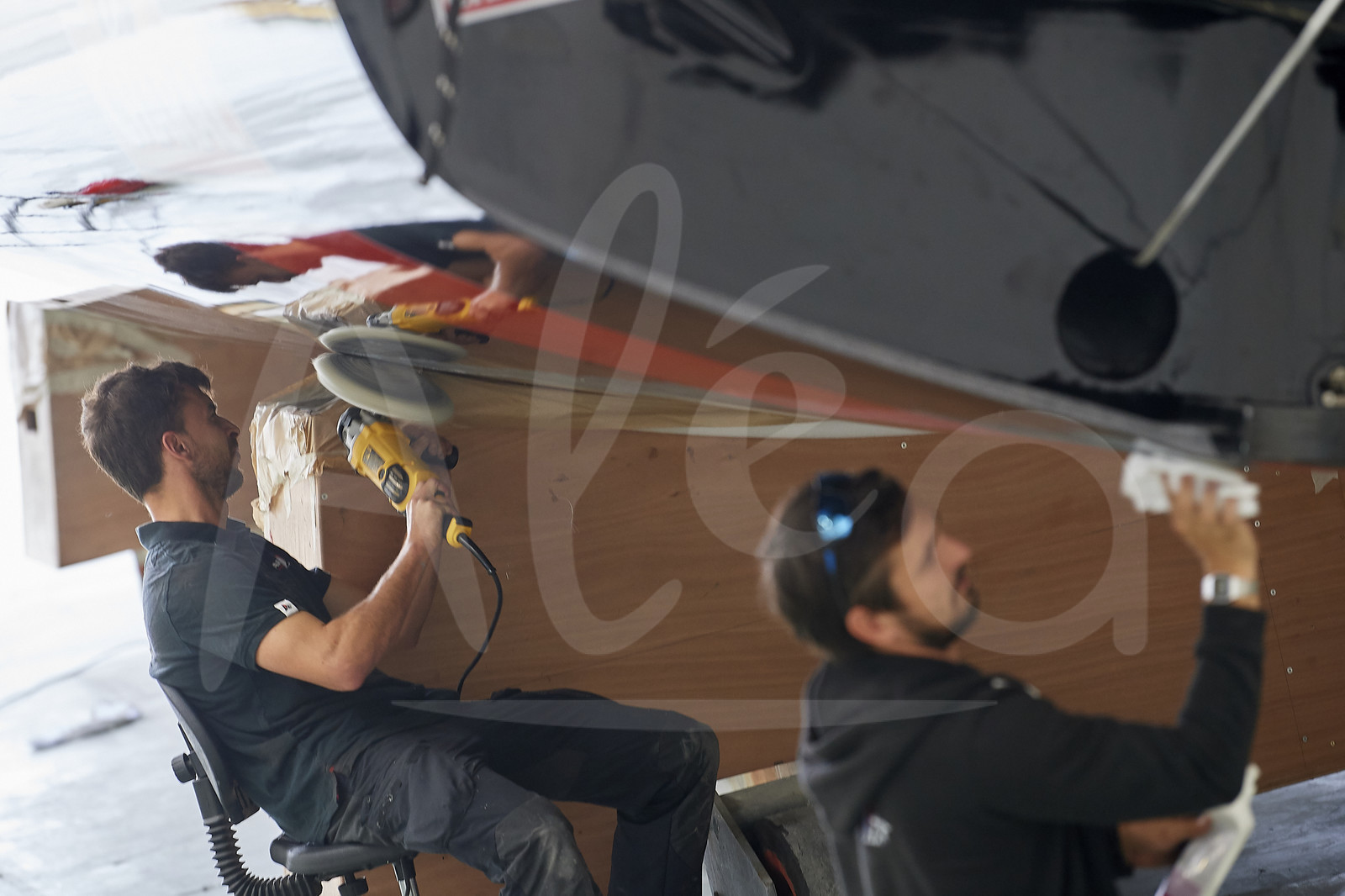 | Description | Reveal of the new IMOCA CHARAL, skipper Jeremie BEYOU, at CDK shipyard in Port La Foret (France), on August 21st, 2018 - Photo Yvan Zedda / Alea |