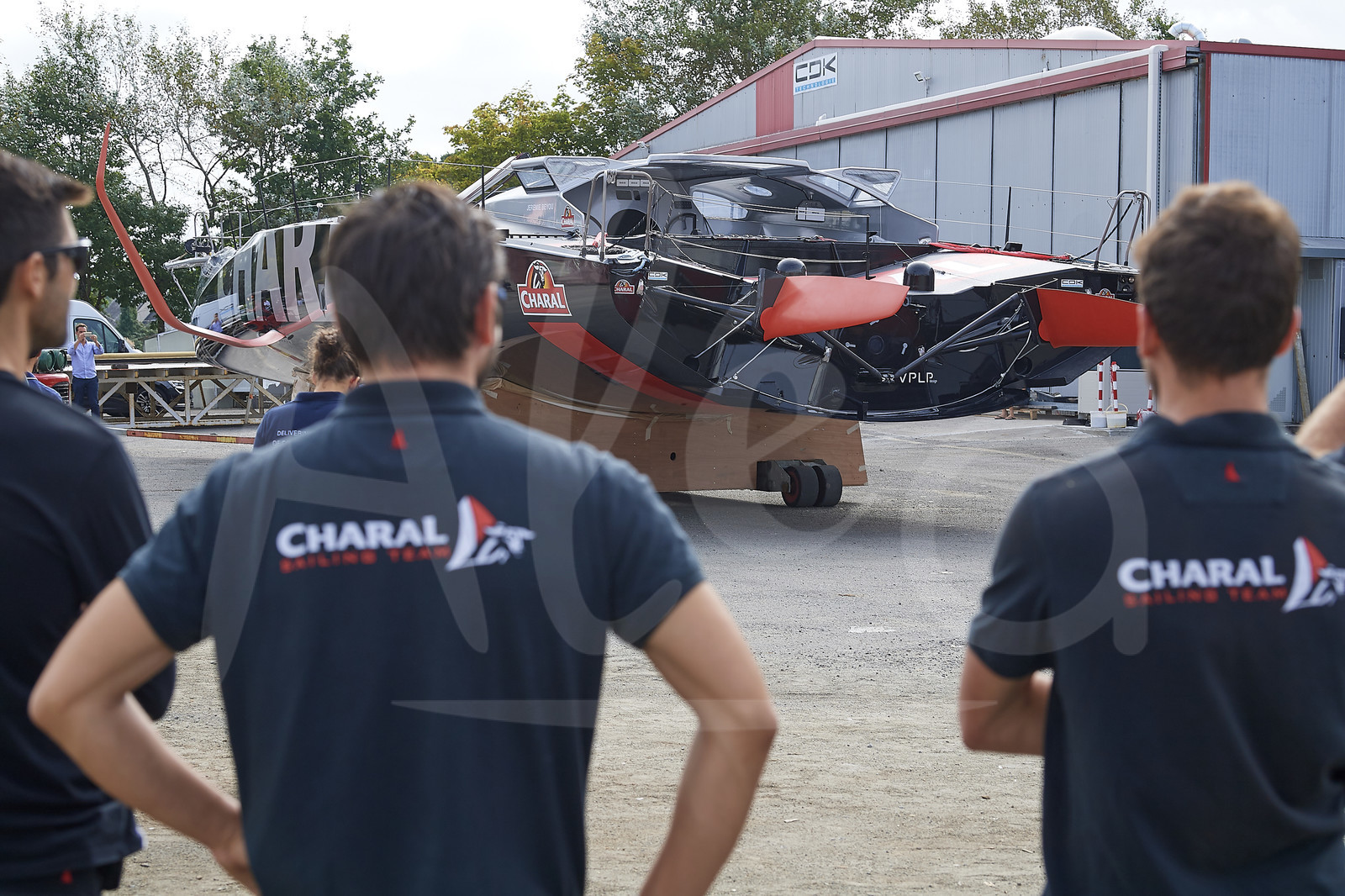 | Description | Reveal of the new IMOCA CHARAL, skipper Jeremie BEYOU, at CDK shipyard in Port La Foret (France), on August 21st, 2018 - Photo Yvan Zedda / Alea |