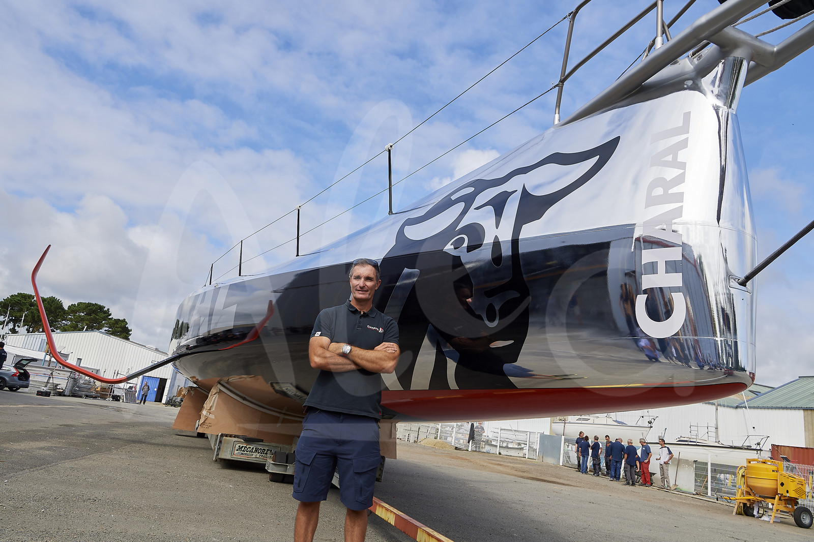 | Description | Reveal of the new IMOCA CHARAL, skipper Jeremie BEYOU, at CDK shipyard in Port La Foret (France), on August 21st, 2018 - Photo Yvan Zedda / Alea |