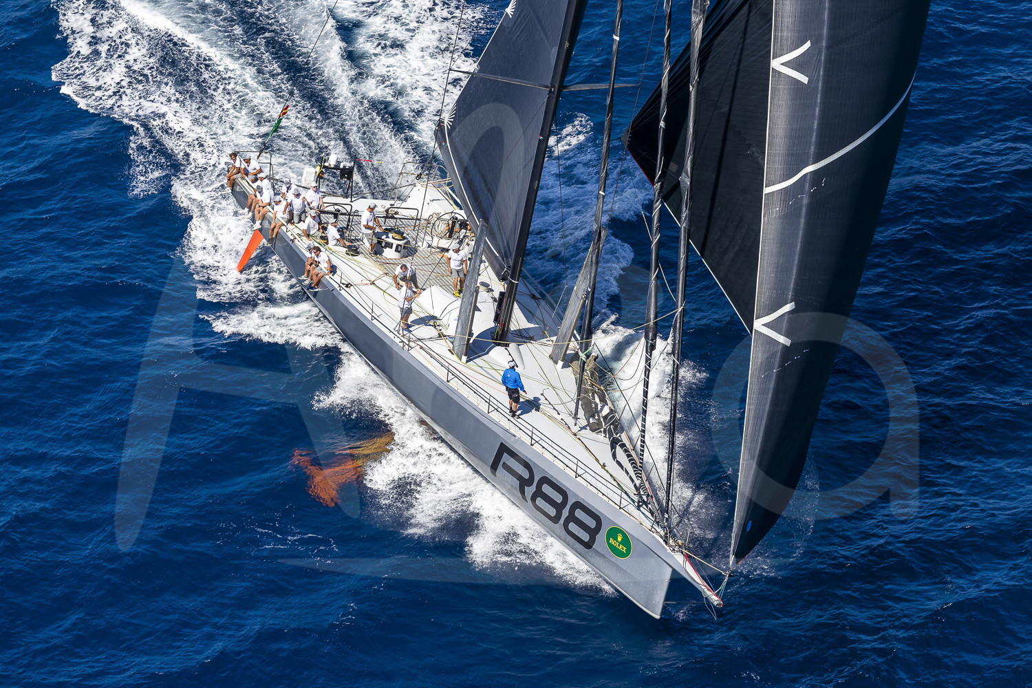 | Description | Graphic aerial illustration of RAMBLER , Model: Maxi Canting, Nation: USA, Sail n.: USA 25555, Lenght: 27,00, Beam: 7,00, Owner / Charterer: New Rambler LLC, during the Maxi Yacht Rolex Cup in Porto Cervo, on September 8th, 2018 - Photo Carlo Borlenghi / Studio Borlenghi / Alea |