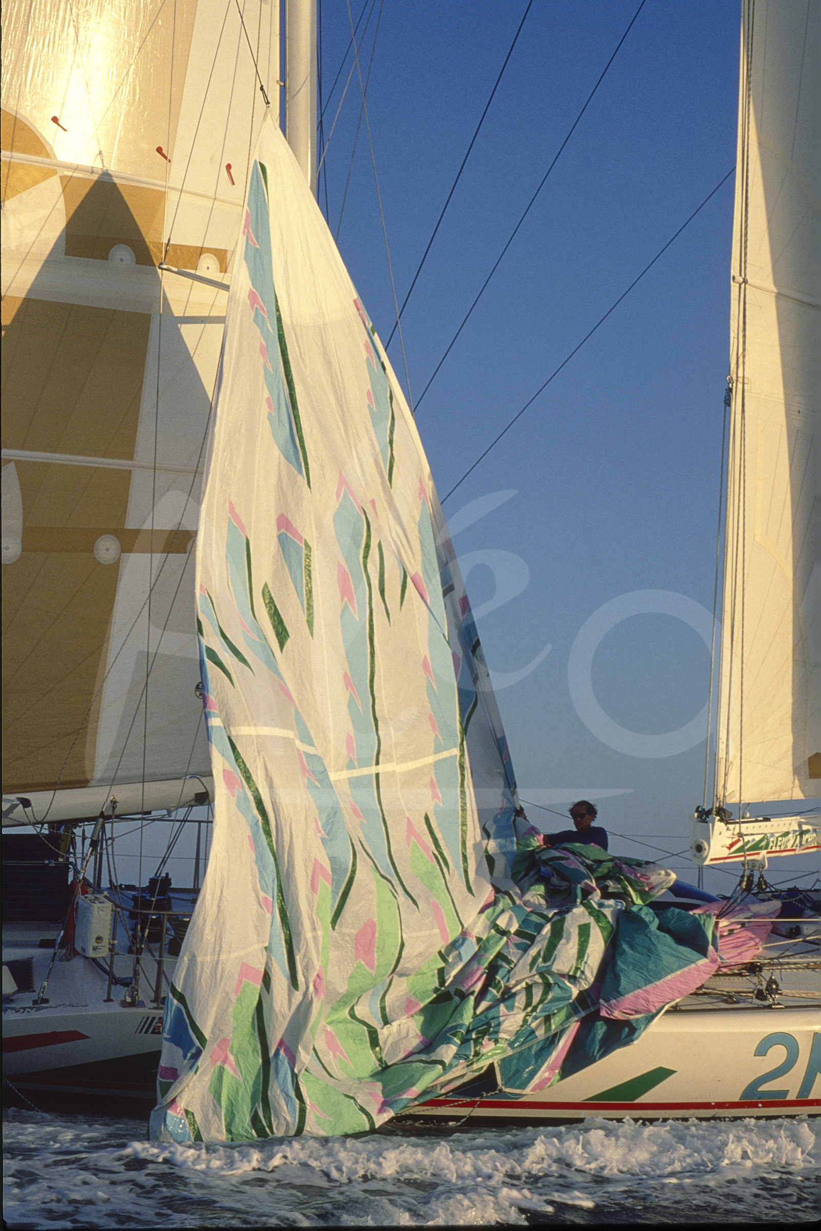 | Description | French skipper Philippe POUPON, Fleury Michon X, launching sails during start of the sailing round-the-world yacht race Vendee Globe, first edition, on November 26th, 1989 © Bernard Rubinstein / Alea |