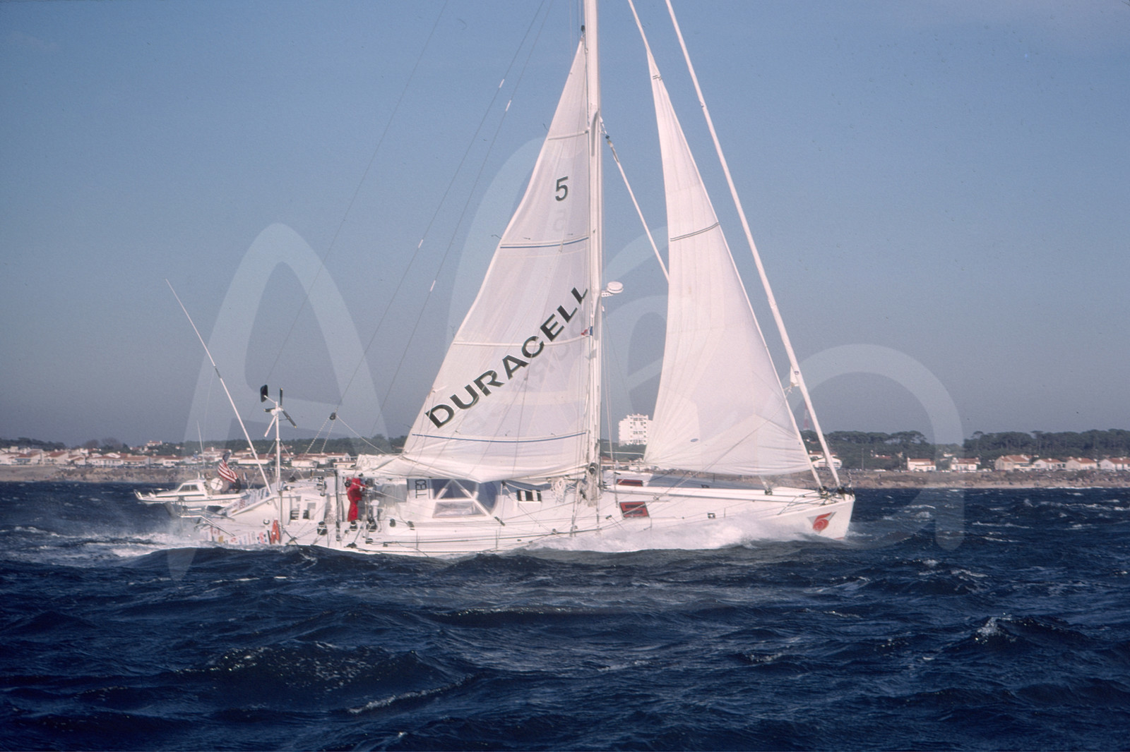 | Description | American skipper Mike PLANT, Duracell, during start of the sailing round-the-world yacht race Vendee Globe, first edition, on November 26th, 1989 © Bernard Rubinstein / Alea |