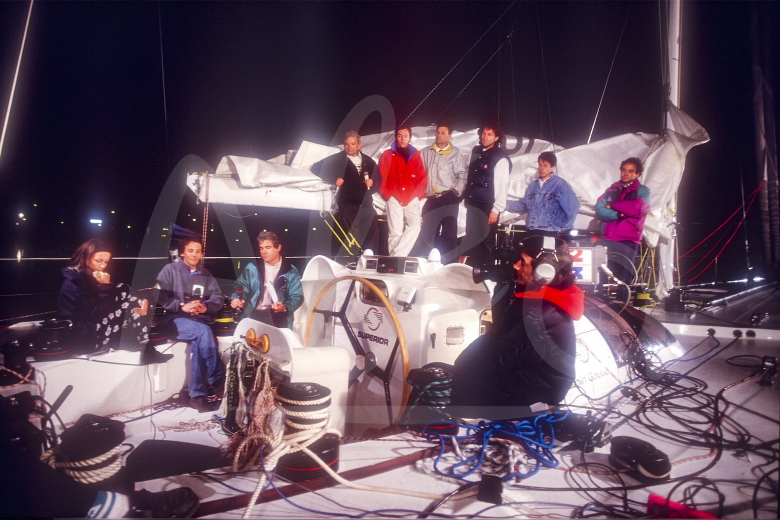 | Description | French skipper Alain Gautier guest of Thalassa TV broadcast, with Georges Pernoud, in Les Sables-d'Olonne, western France on March 12, 1993 after his victory in the second Vendee Globe solo round-the-world-race - Photo Bernard Rubinstein / ALEA |