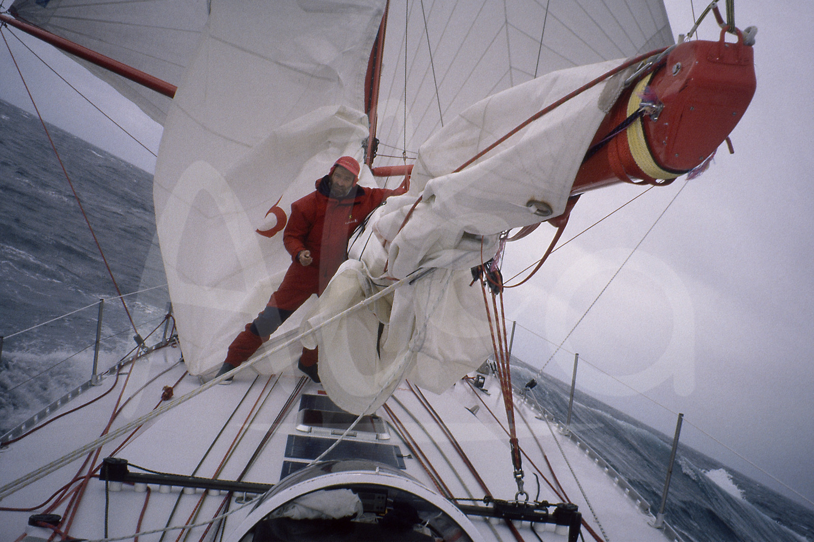 | Description | Selfie of Jean-Luc VAN DEN HEEDE, Groupe Sofap Helvim, in the big south seas during the round-the-world solo sailing yacht race Vendee Globe in Les Sables d'Olonne, West France, on December, 1992 - © Jean-Luc Van den Heede / Alea |
