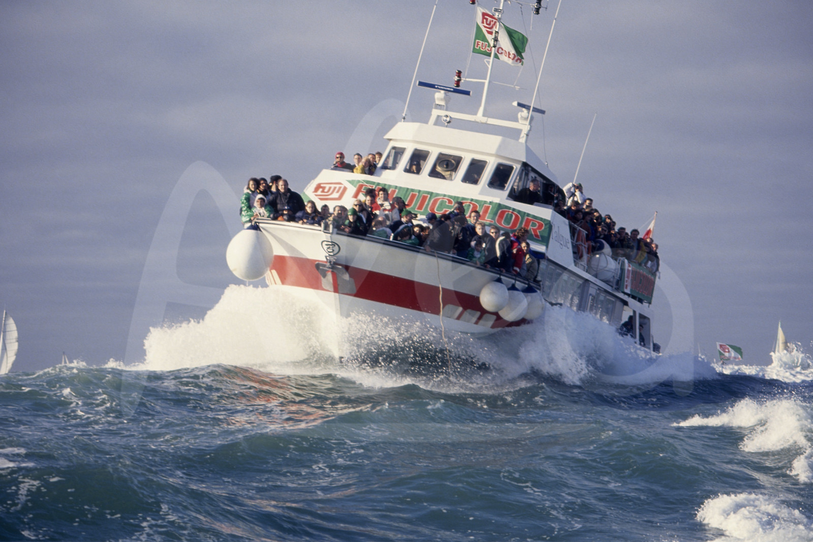 | Description | Illustration of Fujicolor guests during start of the round-the-world solo sailing yacht race Vendee Globe in Les Sables d'Olonne, West France, on November 22nd, 1992 - © Bernard Rubinstein / Alea |