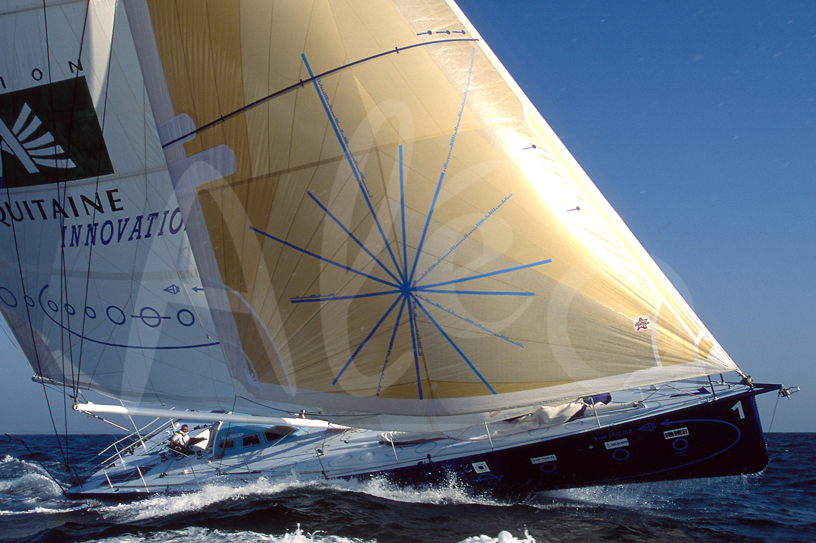 | Description | Yves PARLIER, Aquitaine Innovations, training for the round-the-world solo sailing yacht race Vendee Globe in Les Sables d'Olonne, West France, on September, 1996 - © Henri Thibaut / Alea |