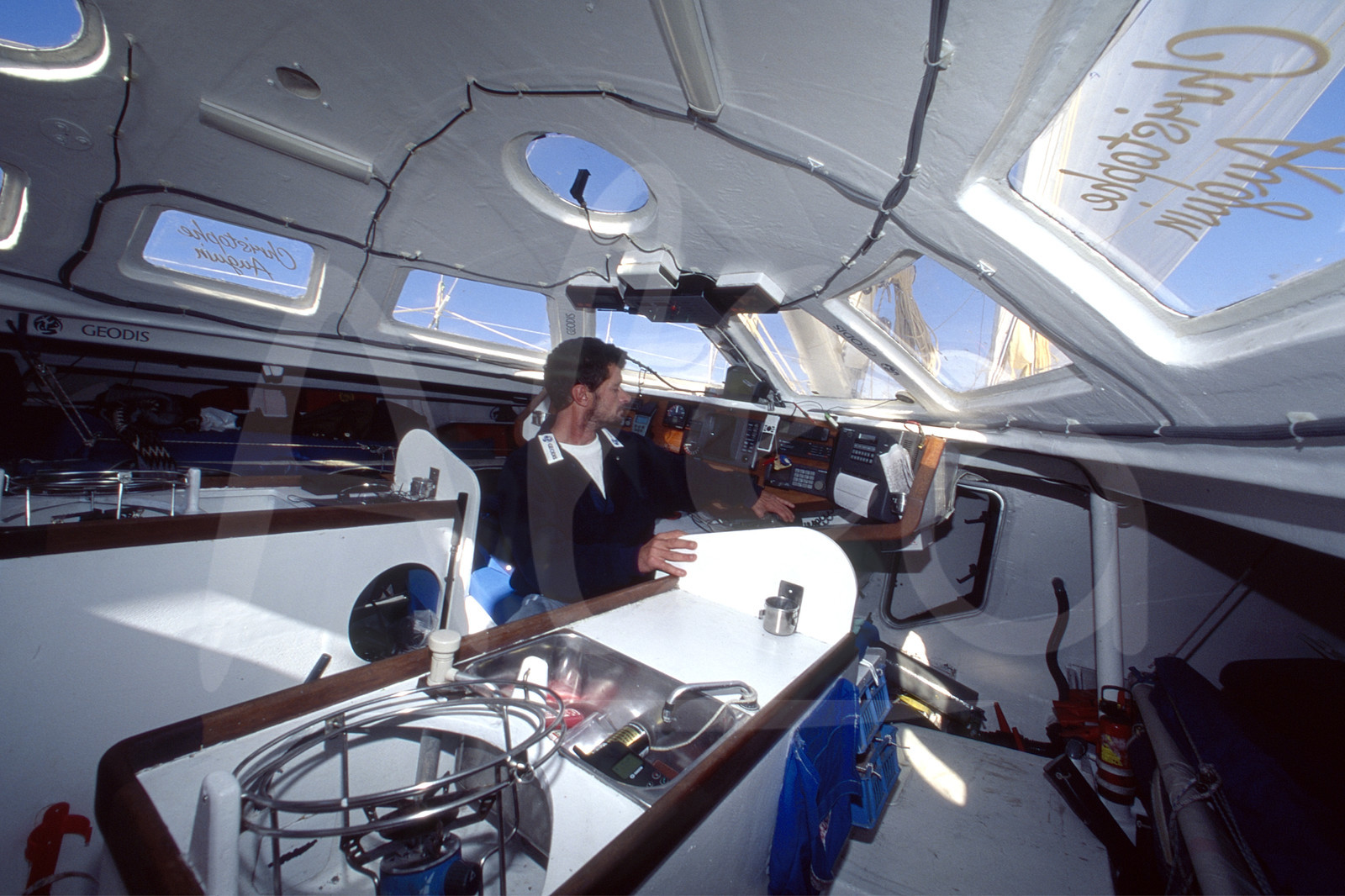 | Description | Christophe AUGUIN, Geodis, training for the round-the-world solo sailing yacht race Vendee Globe off Granville, West France, on September, 1996 - © Henri Thibaut / Alea |