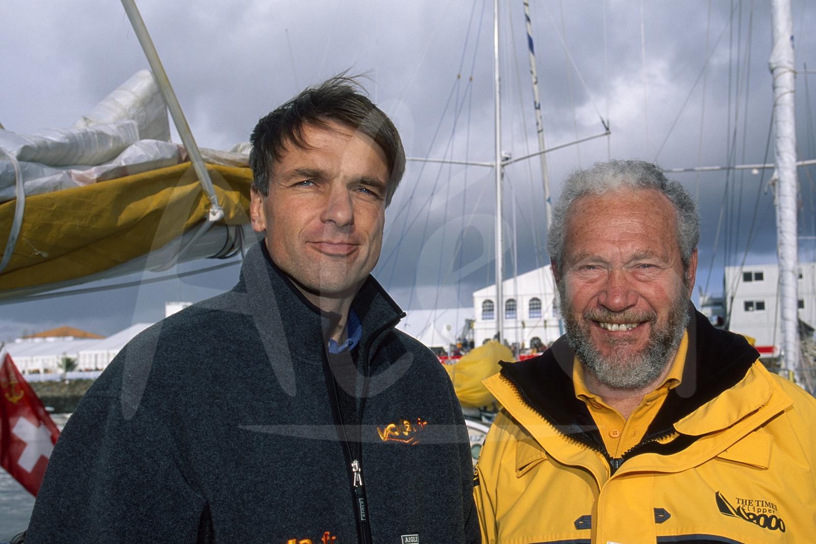 | Description | Portrait of skipper Bernard GALLAY, Voila.fr, with Sir Robin Knox-Johnston, before the round-the-world solo sailing yacht race Vendee Globe in Les Sables d'Olonne, West France, on October, 2000 - © Bernard Rubinstein / Alea |