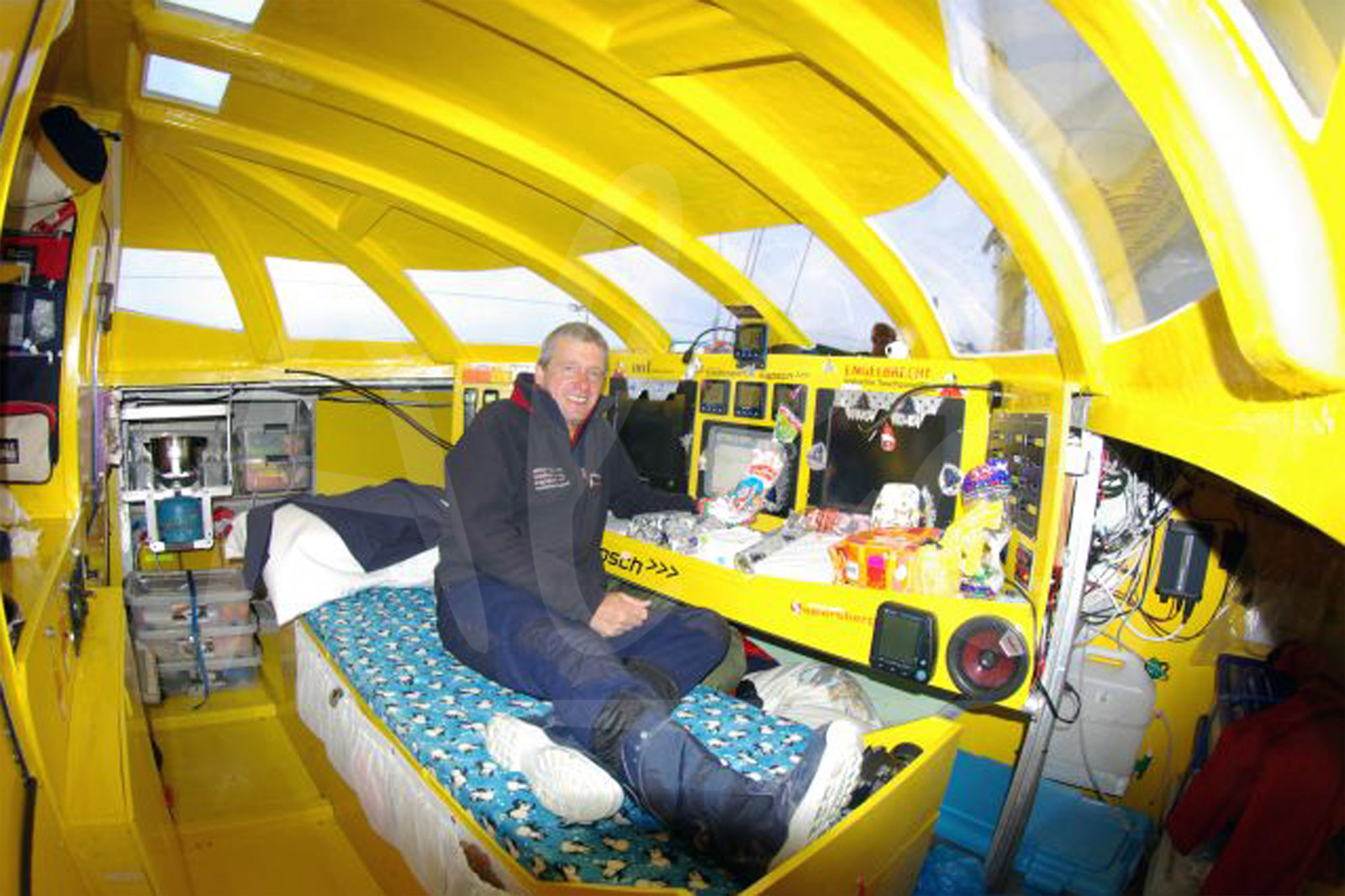 | Description | Austrian skipper Norbert Sedlacek, aboard Nauticsport Kapsch opening gifts at Christmas, self portrait during the solo round the world sailing race Vendee Globe, 4th edition, on December 25th 2000 - Photo Norbert Sedlacek / Alea. |