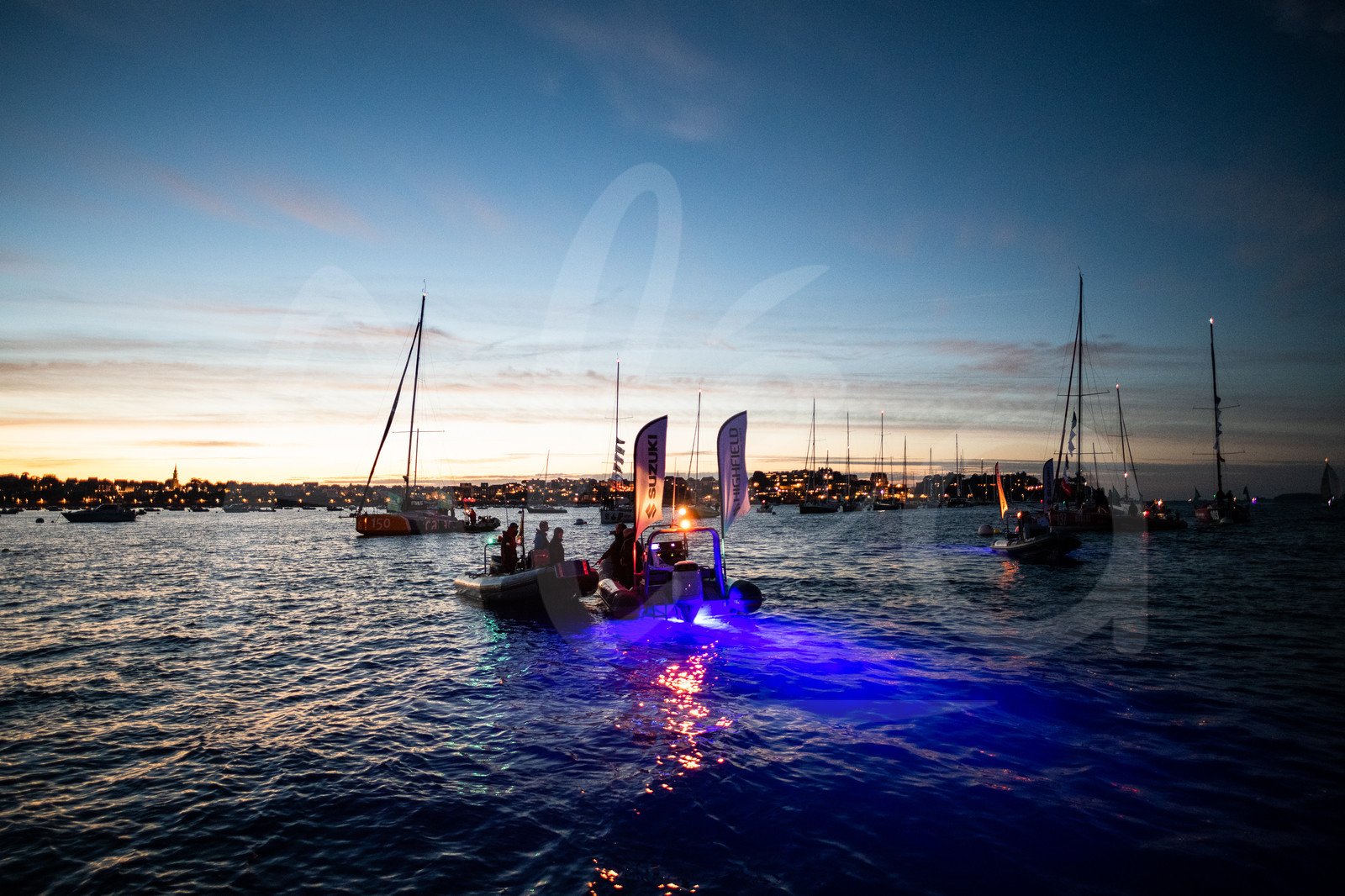 | Description | General view of Highfield motorboats while class 40 rejoin their moorings, they will spend the night before the start of the Route du Rhum 2018, on November 3rd, 2018 in St-Malo, north Brittany, France - Photo Jean-Louis Carli / Alea |