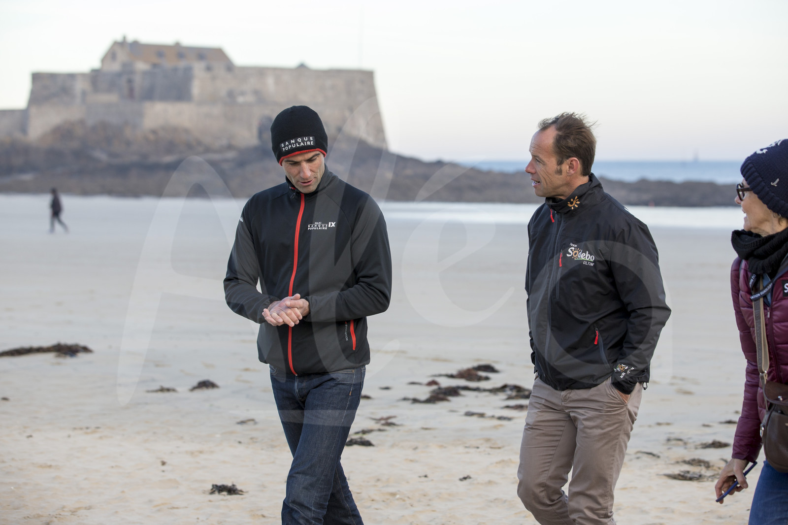 | Description | Ultime skippers, Armel Le Cleac'h, Banque Populaire IX with Thomas Coville, Sodebo Ultim', on Sillon beach, during the pre-start of the Route du Rhum 2018, on November 3rd, 2018 in St-Malo, north Brittany, France - Photo Jean-Marie Liot / Alea |