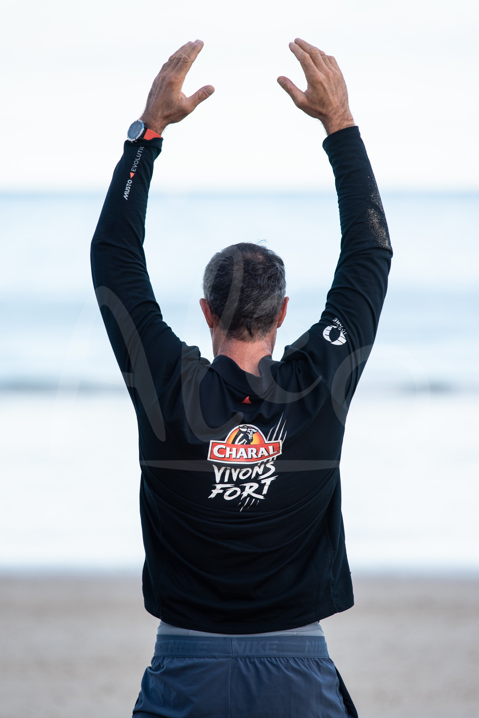 | Description | Training on the beach for skipper imoca Jeremie Beyou, Charal, during the pre-start of the Route du Rhum 2018, on November 2nd, 2018 in St-Malo, north Brittany, France - Photo Jean-Louis Carli / Alea |