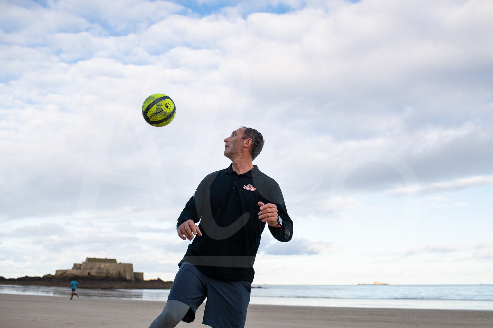 | Description | Training on the beach for skipper imoca Jeremie Beyou, Charal, during the pre-start of the Route du Rhum 2018, on November 2nd, 2018 in St-Malo, north Brittany, France - Photo Jean-Louis Carli / Alea |