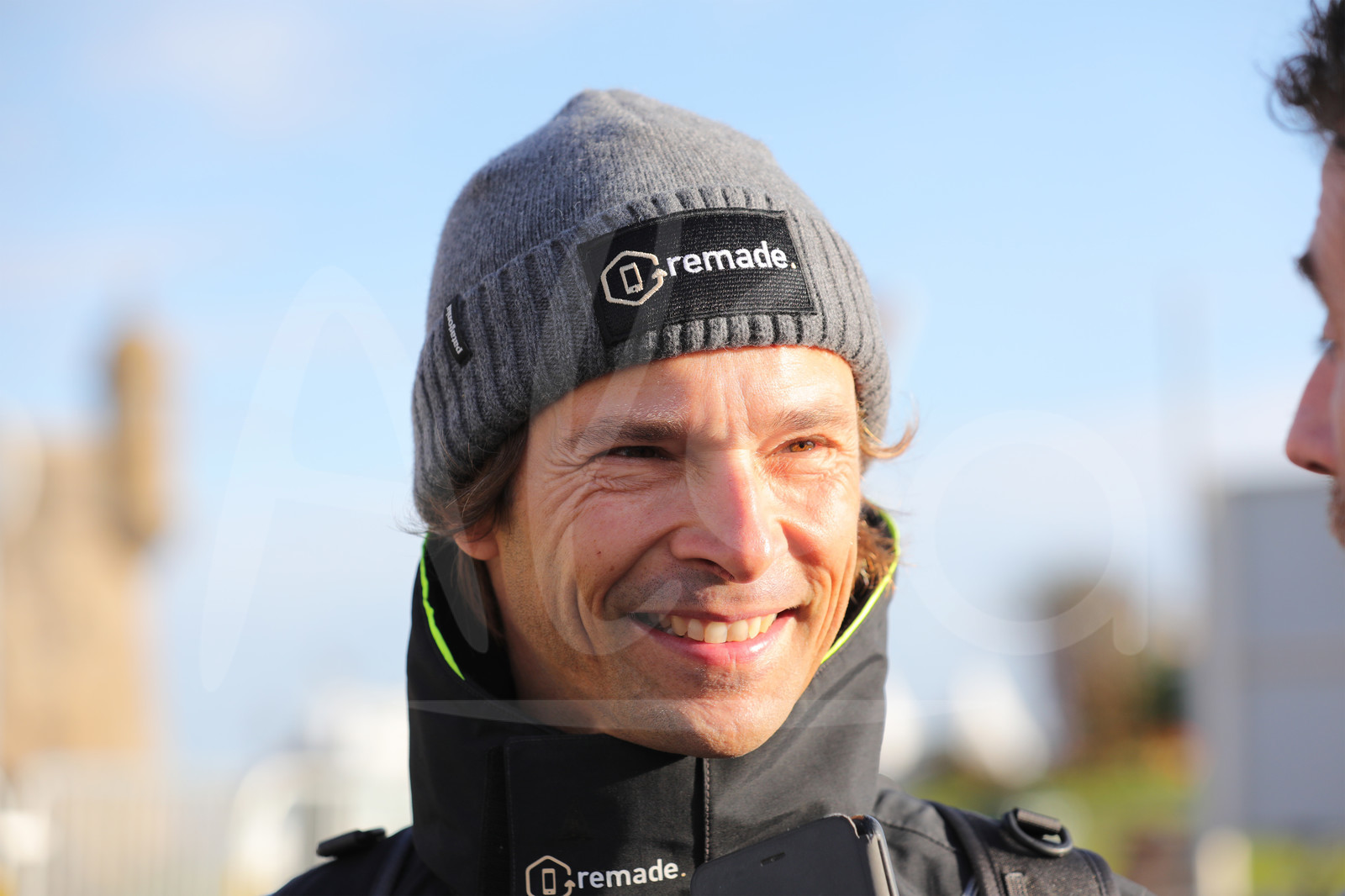 | Description | Skipper imoca SMA, Paul Meilhat, leaving pontoons to move towards his boat during start of the Route du Rhum 2018, on November 4th, 2018 in St-Malo, north Brittany, France - Photo Jean-Marie Liot / Alea |