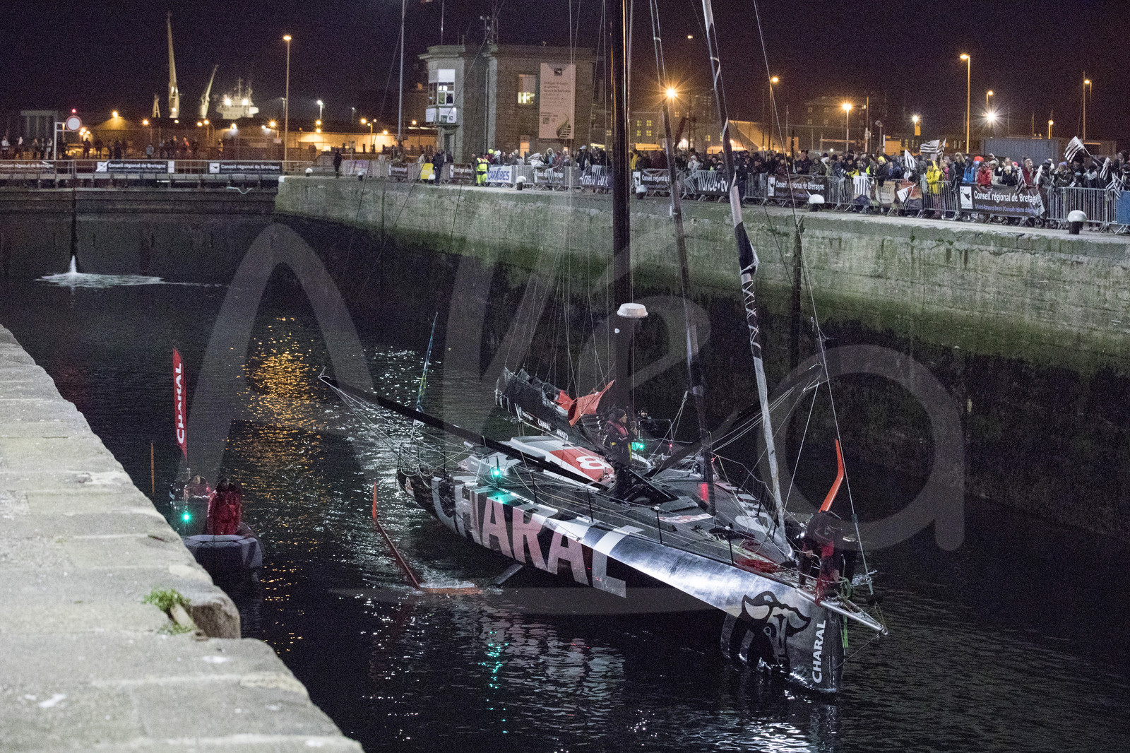 | Description | IMOCA Charal, skipper Jeremie Beyou, passing the lock in order to set outside for the night before start, during the pre-start of the Route du Rhum 2018, on November 4th, 2018 in St-Malo, north Brittany, France - Photo Jean-Marie Liot / Alea |