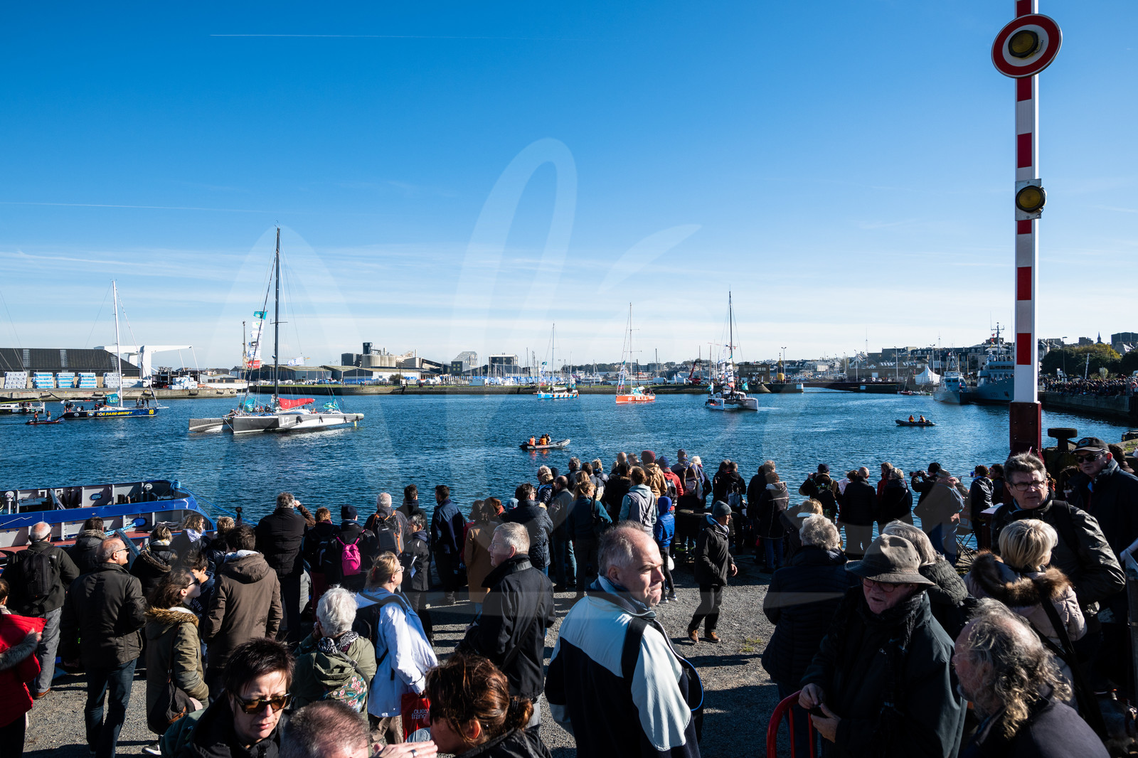 | Description | Ambiance public watching boats leaving pontoon during the pre-start of the Route du Rhum 2018, on November 3rd, 2018 in St-Malo, north Brittany, France - Photo Jean-Louis Carli / Alea |