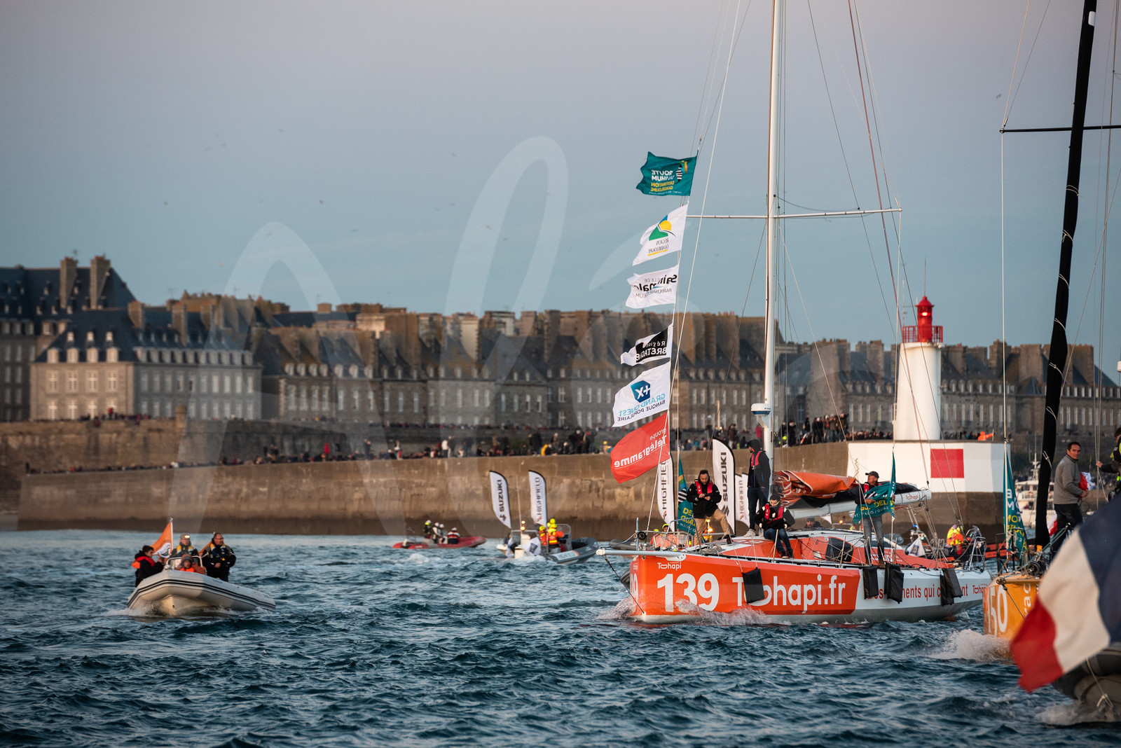 | Description | General view of the public while class 40 are leaving pontoons to pass a lock towards moorings, they will spend the night before the start of the Route du Rhum 2018, on November 3rd, 2018 in St-Malo, north Brittany, France - Photo Jean-Louis Carli / Alea |