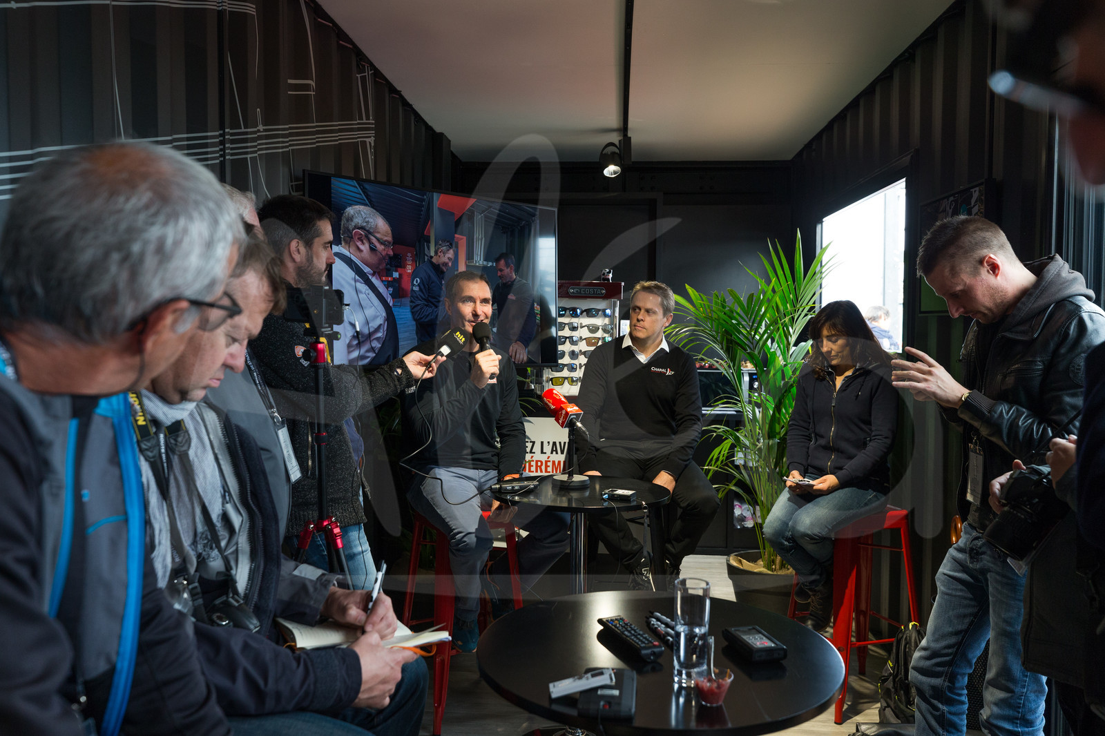 | Description | Media and Matthieu Bigard during the press conference Charal, skipper Jeremie Beyou, during the pre-start of the Route du Rhum 2018, on November 1st, 2018 in St-Malo, north Brittany, France - Photo Jean-Marie Liot / Alea |