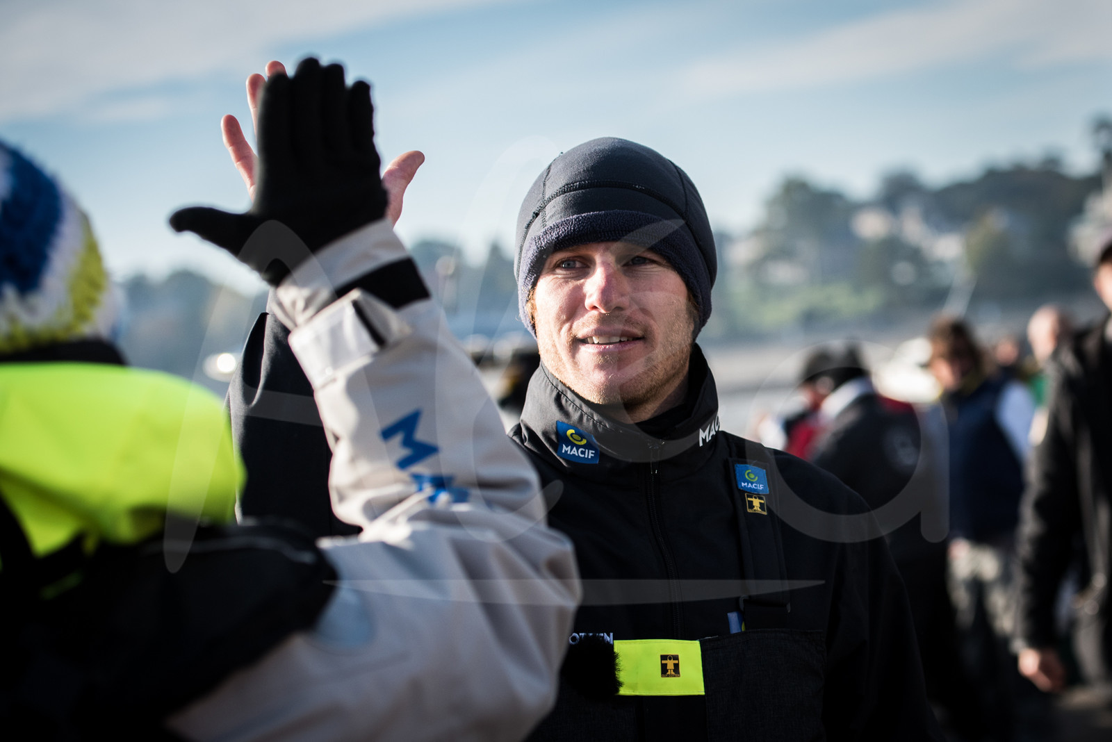 | Description | Francois Gabart, skipper ultime MACIF, on his way to his boat offshore before start of the Route du Rhum 2018, on November 4th, 2018 in St-Malo, north Brittany, France - Photo Stephanie Billarant / Alea |